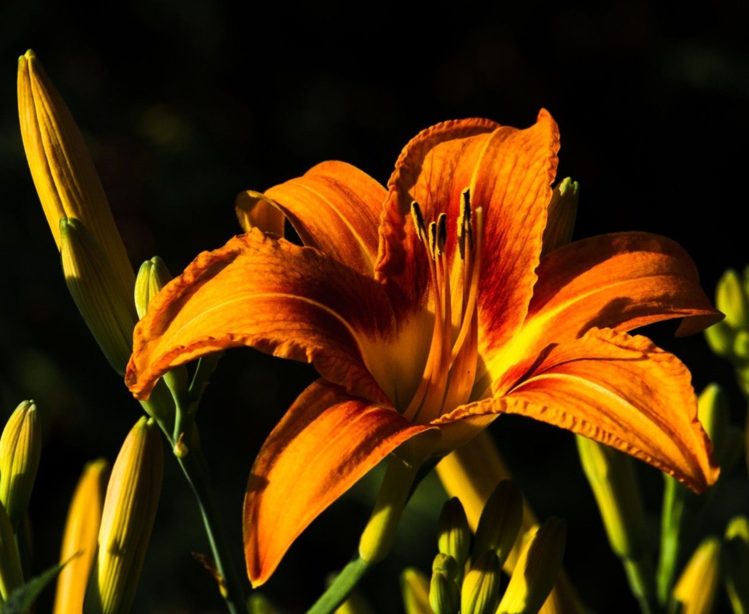 Gelb-orange Blume mit Stößel und Staubblatt mit Mitte