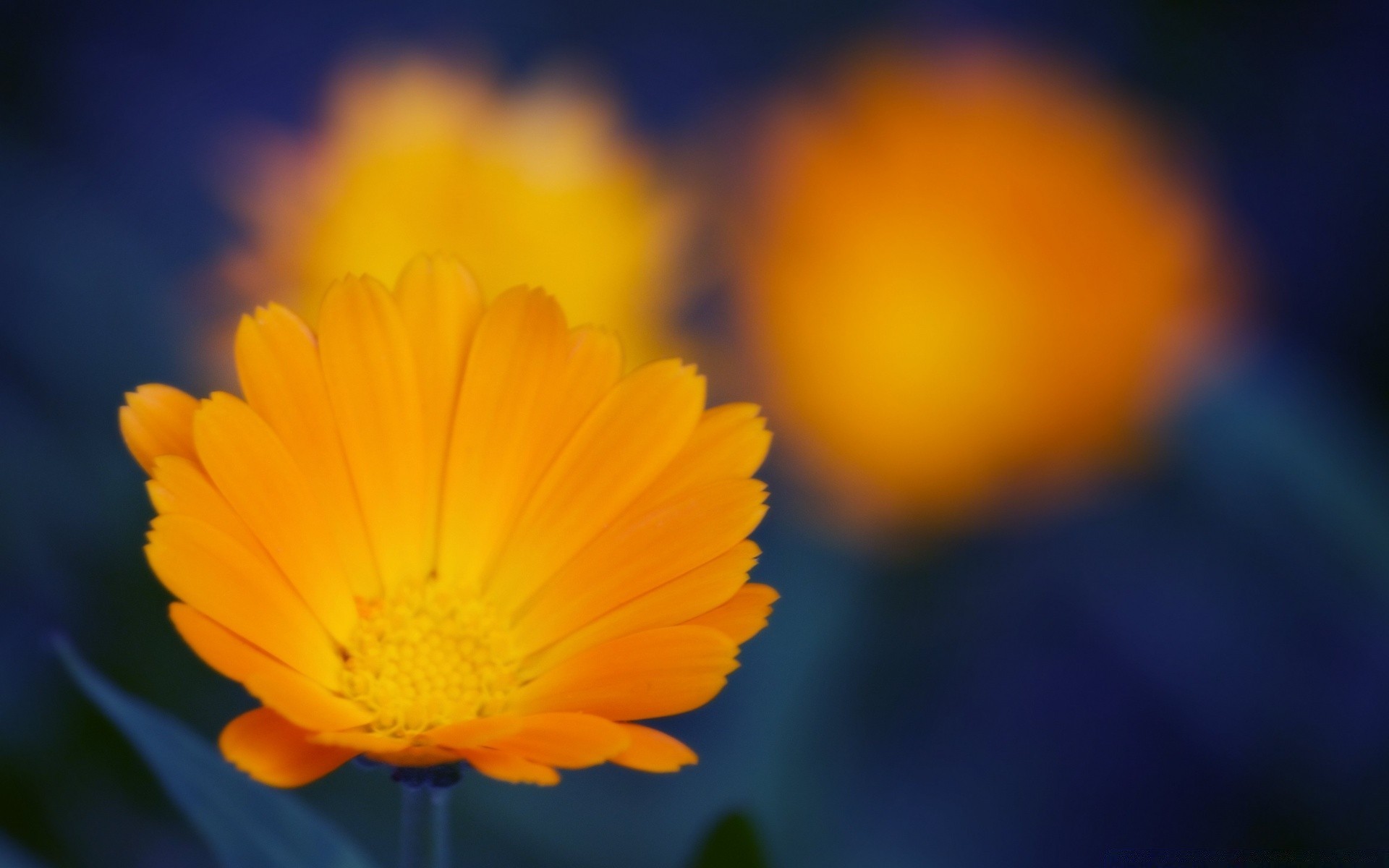 Orange Ringelblume Blume auf dunkelblauem Hintergrund