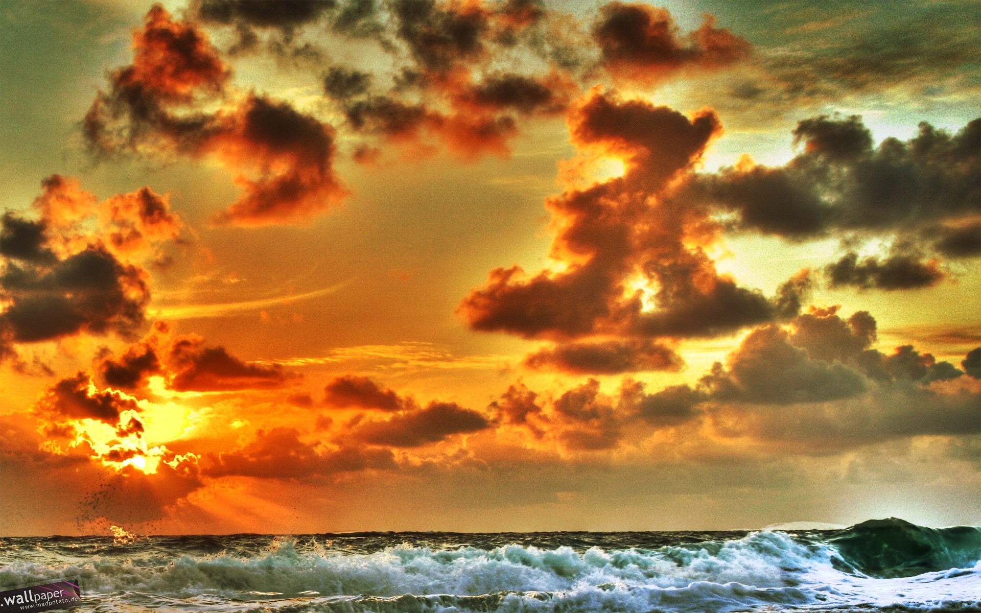 Orange Sonnenuntergang auf der Oberfläche der Küste