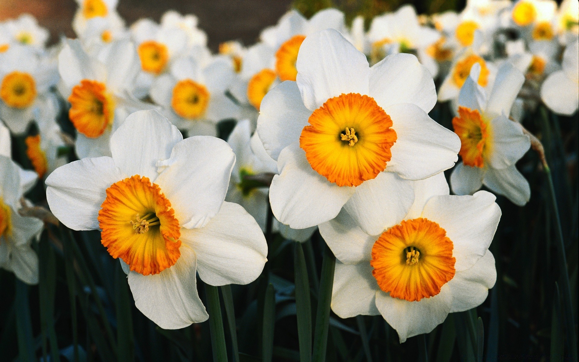 Weiße Blüten mit orangefarbener Mitte