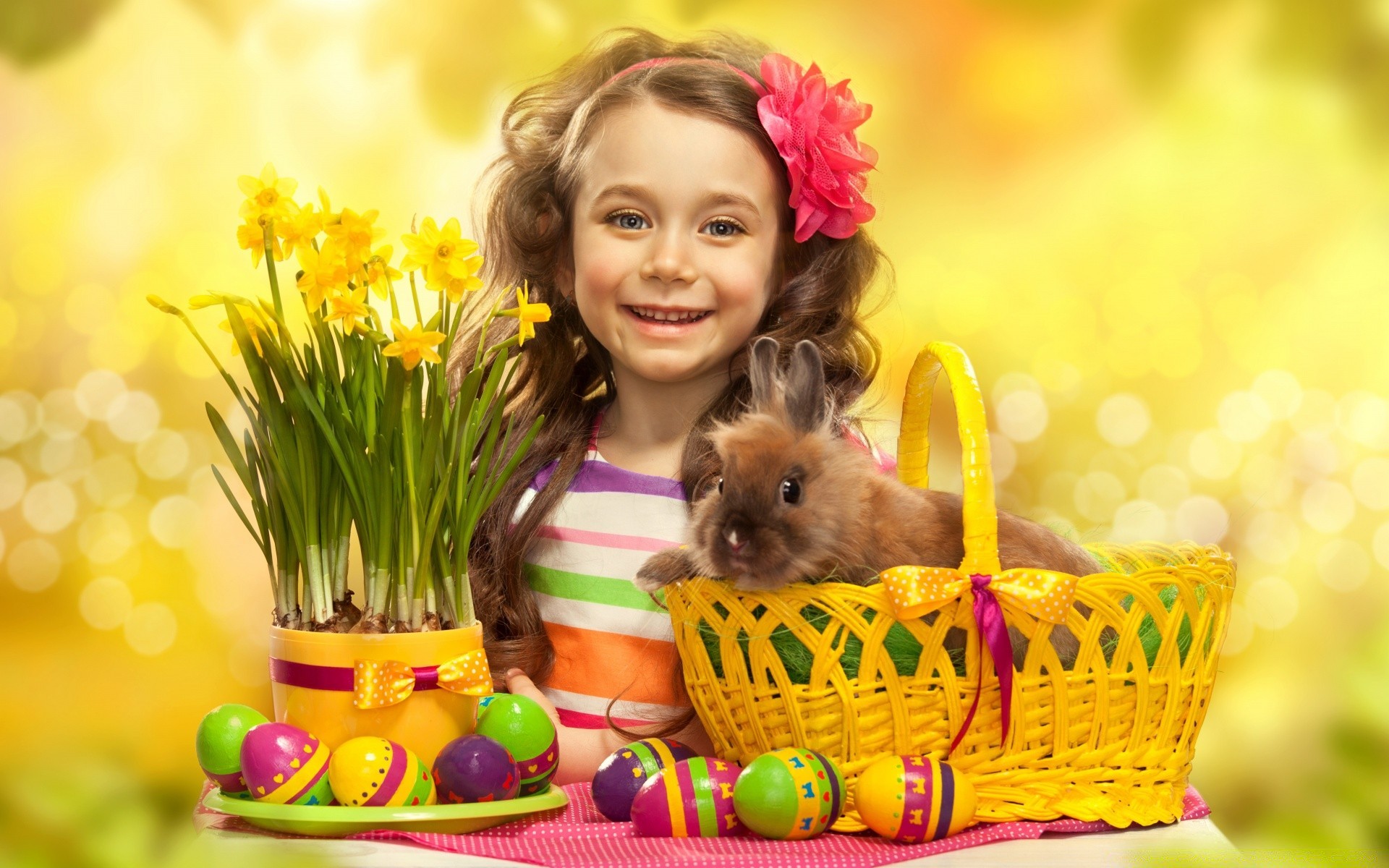Mädchen mit Kaninchen und Ostereiern