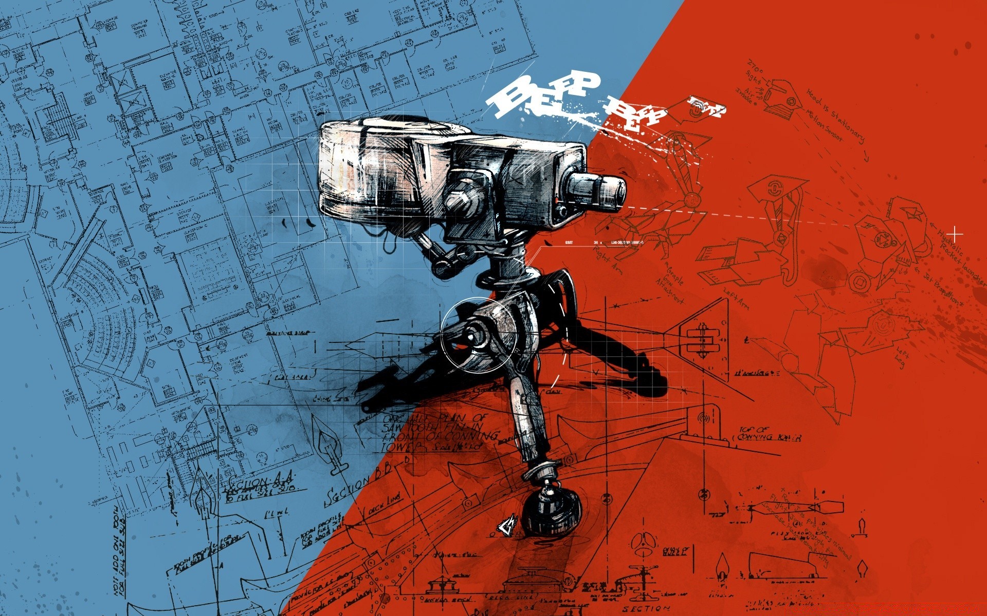 Automatische Sentry Gun im Hintergrund des Gebäudeplans