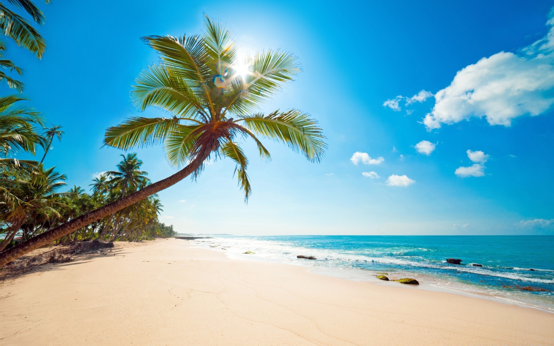 Palme am Ufer aus hellem Sand