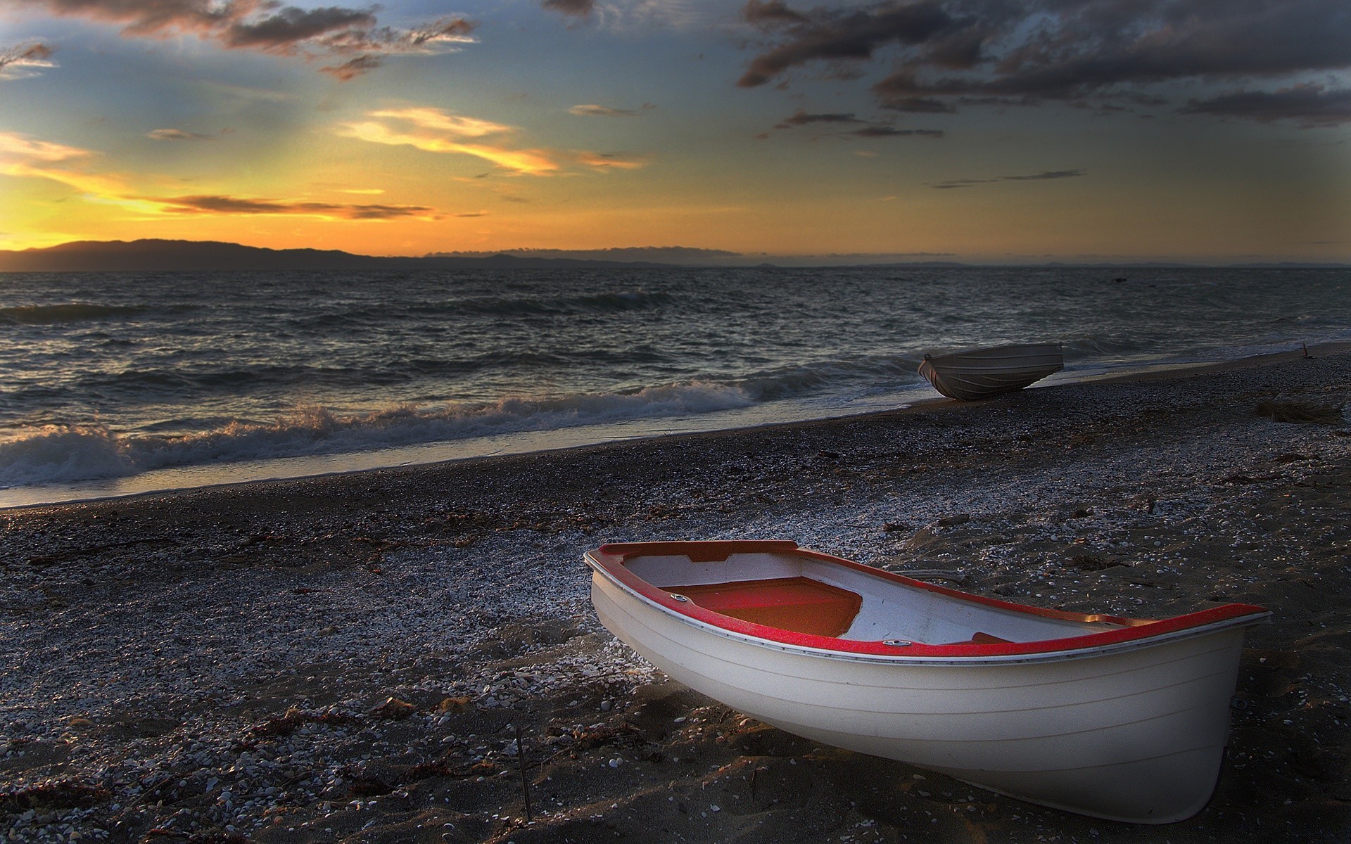 Sonnenstrahlen vor dem Hintergrund des dunklen Himmels und des Meeres