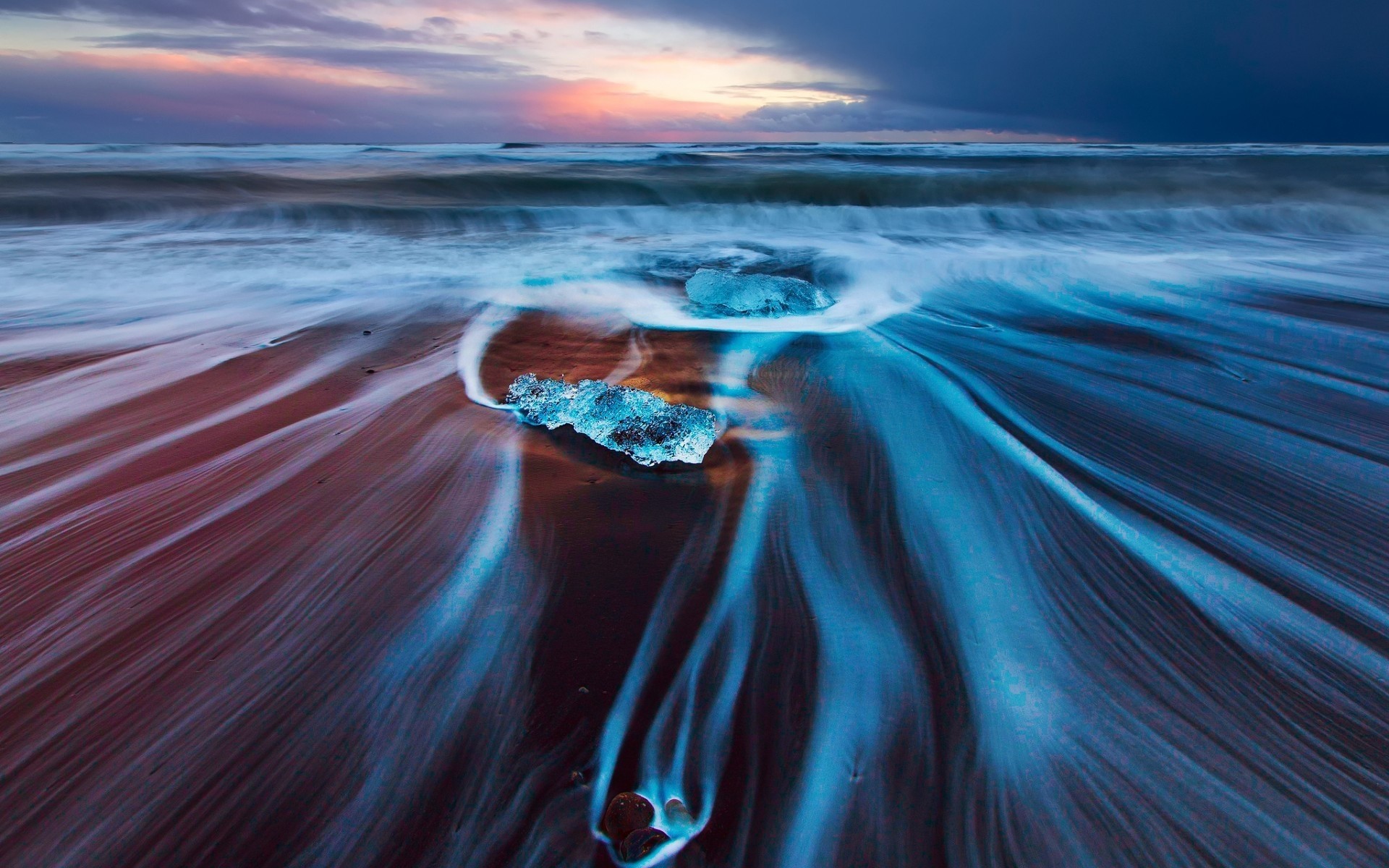 Ein Sonnenuntergang am Strand, nach dem die Dämmerung einsetzt