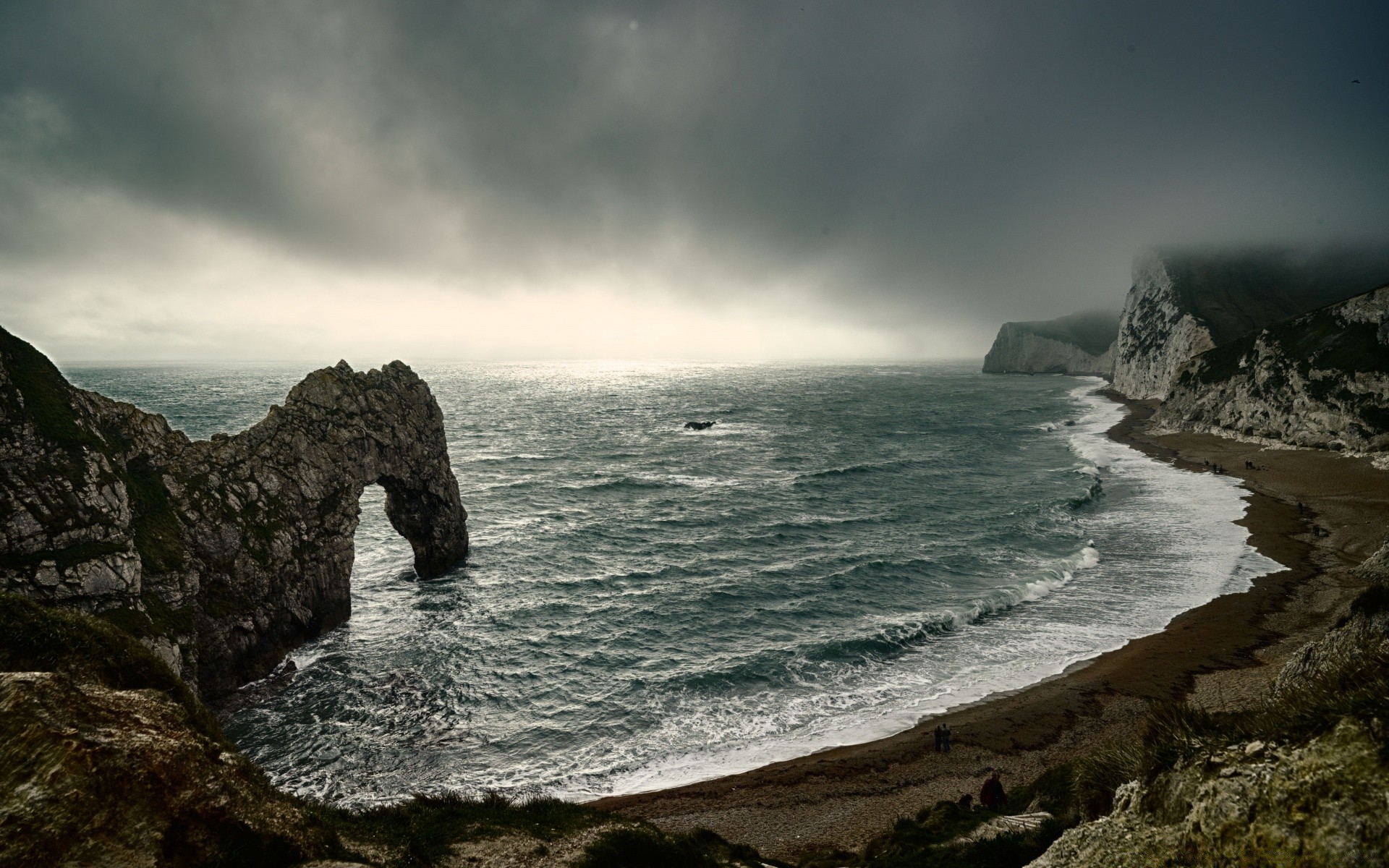 Mädchen, das einen Leuchtturm im Ozean ansieht