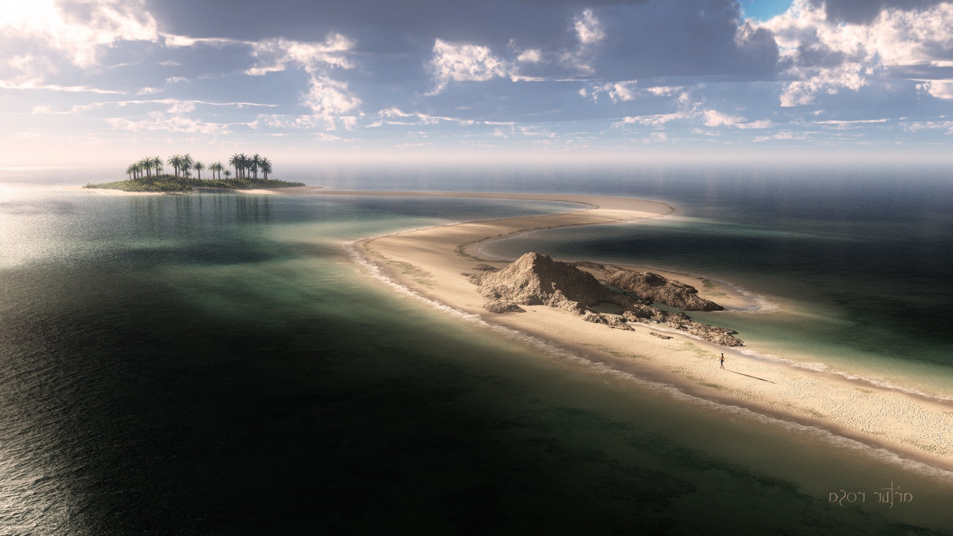 Eine kleine Insel mit einem Haufen Palmen im endlosen Meer