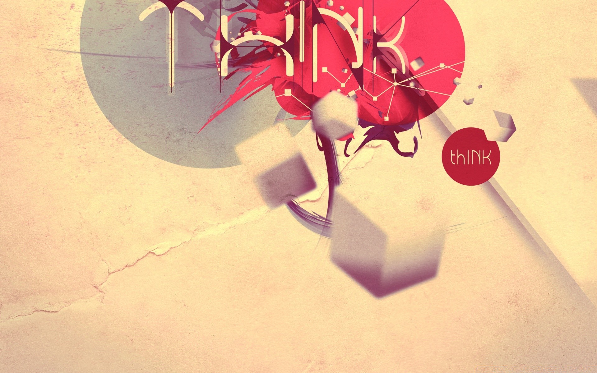 Auf Satori-Hintergrund vier Würfel mit roten Inschriften nebeneinander