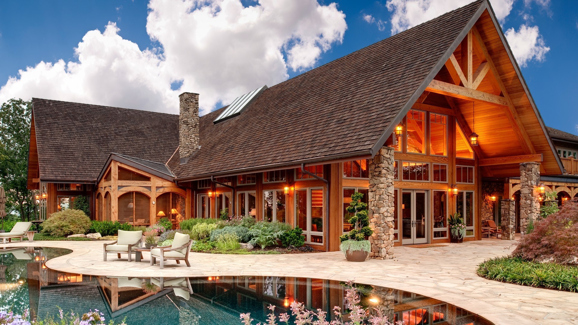 Gemütlicher Abend auf der Veranda mit Holzmöbeln