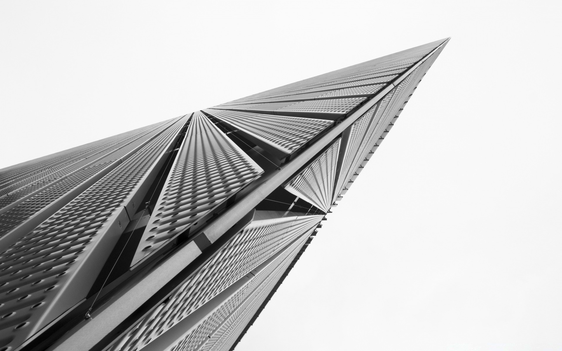 Schwarz-Weiß-Bild eines architektonischen Gebäudes