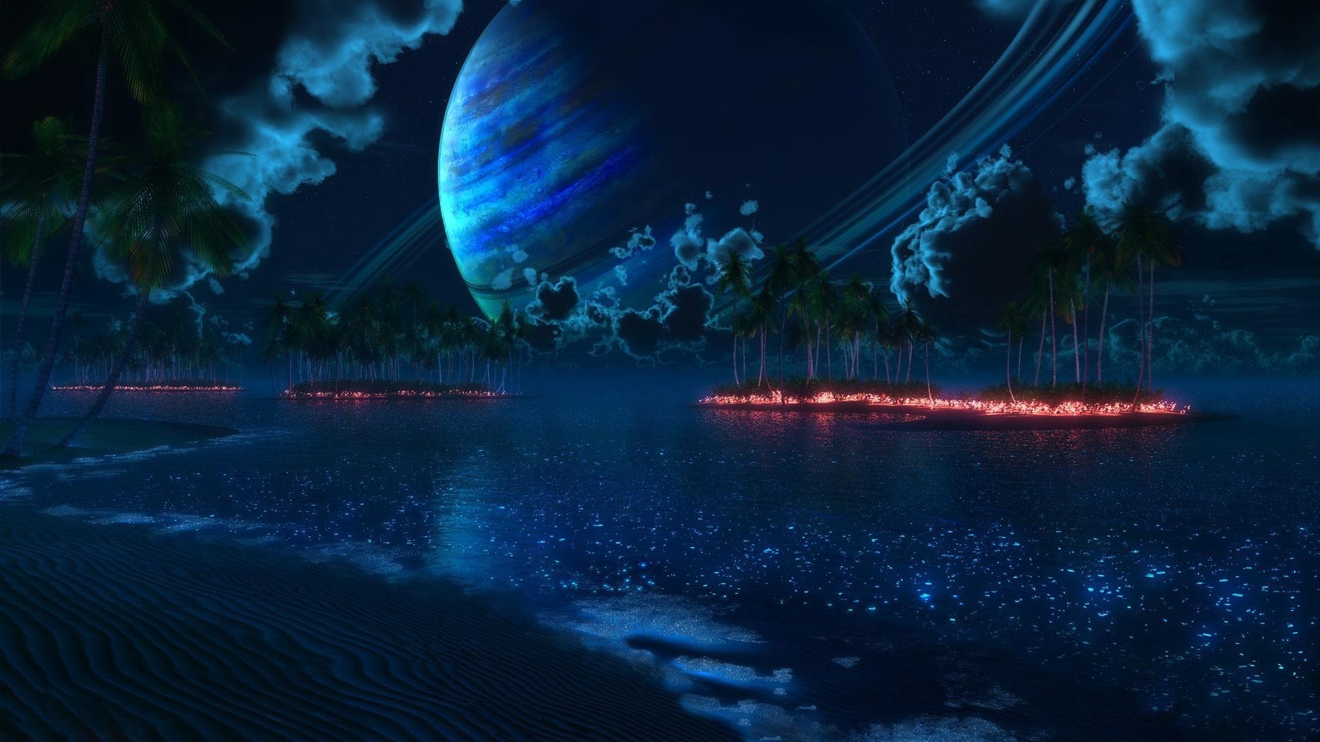 Saturn auf dem hintergrund des meeres auf dem planetenSaturn auf dem Hintergrund des Meeres auf dem Planeten