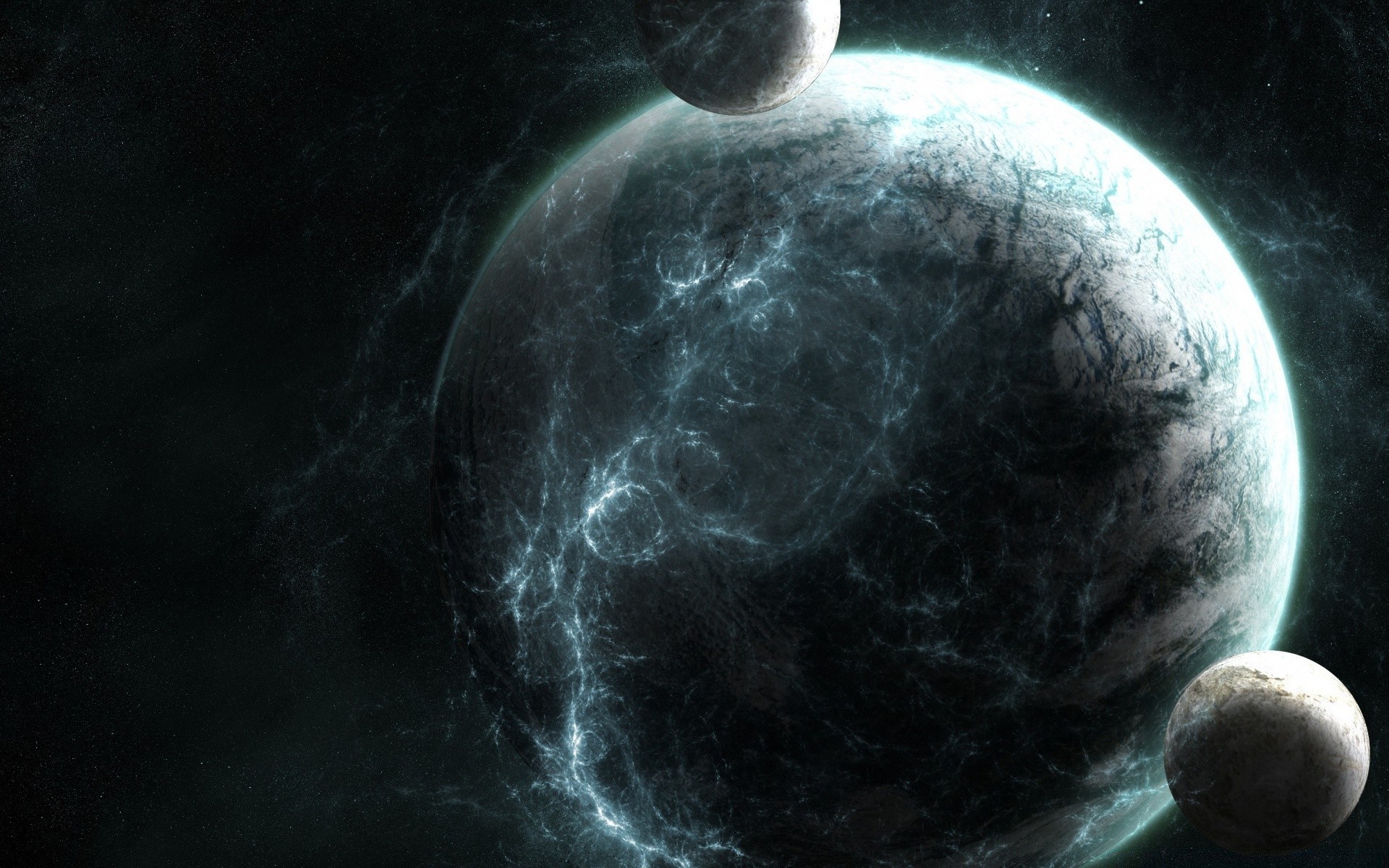 Ein Planet im tiefen schwarzen Kosmos