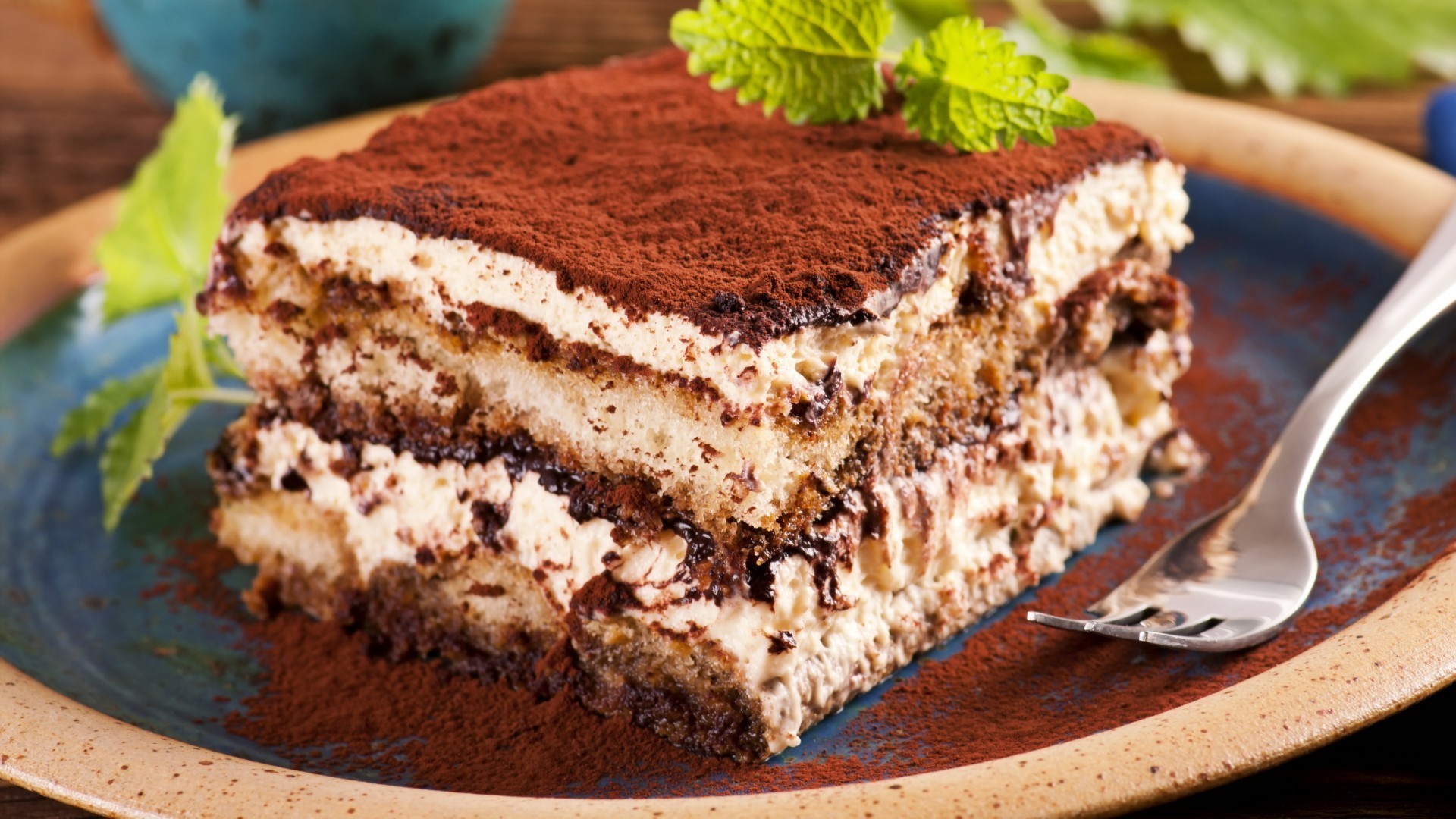 Blätterteigkuchen auf einem Teller mit einer Gabel