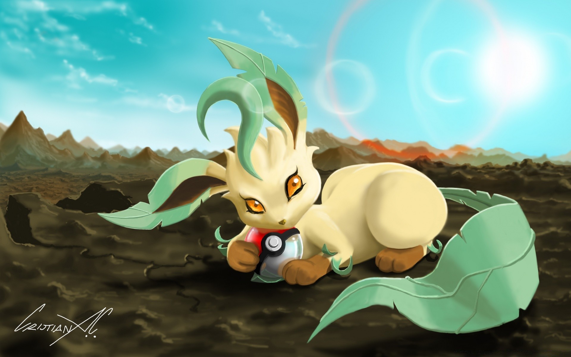 Beispiel für ein Pokemon auf Felsen mit klarem Himmel