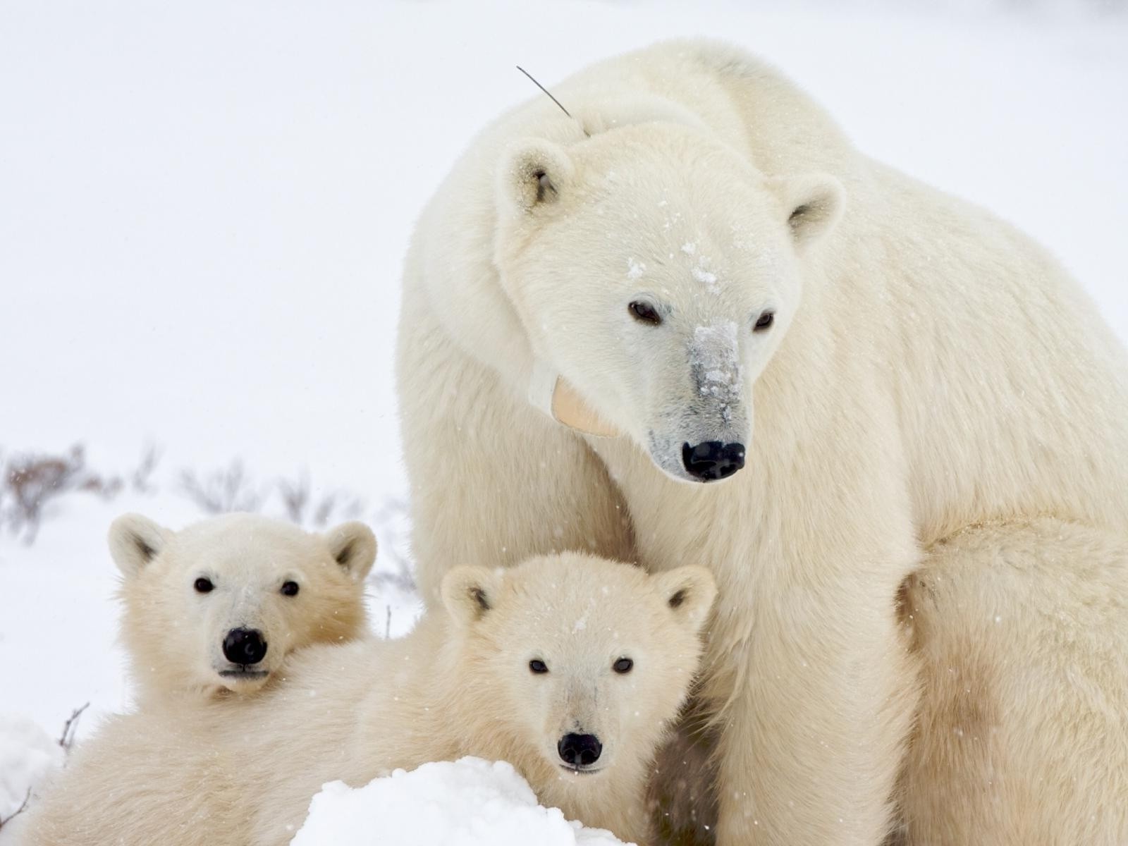Ein Bär mit einem Bären im Winter auf einer Eisscholle