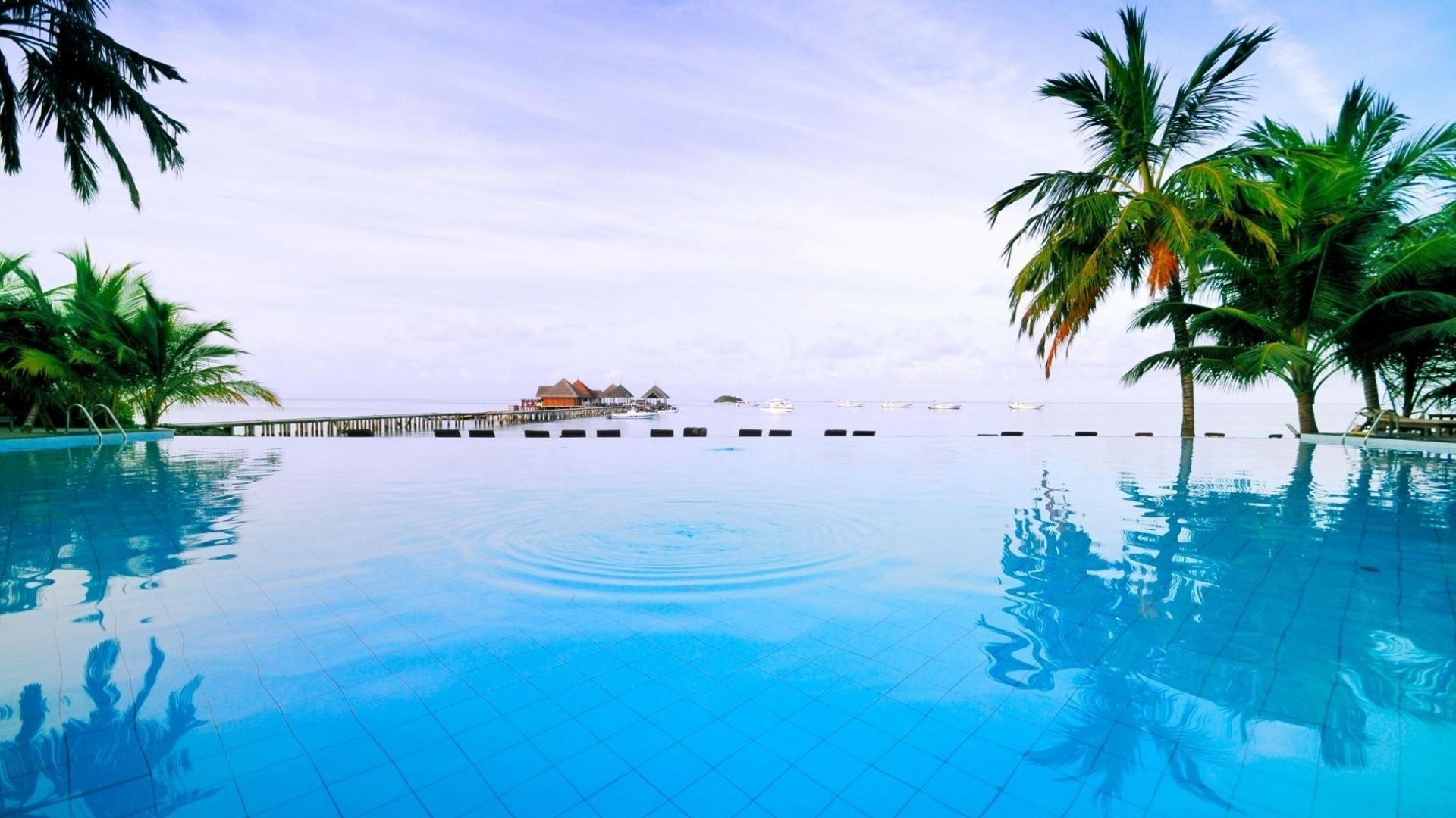 Tropisches Resort mit Pool auf dem Hintergrund des Ozeans
