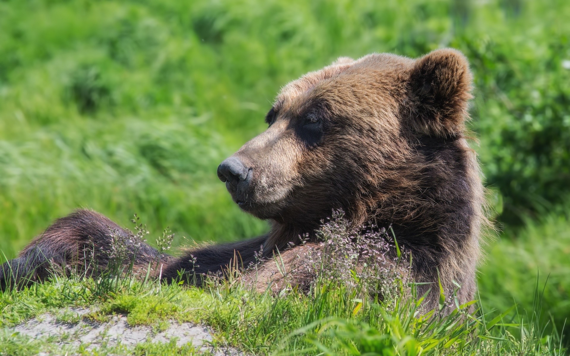 Der Teddybär wird auf dem grünen Rasen herauskommen