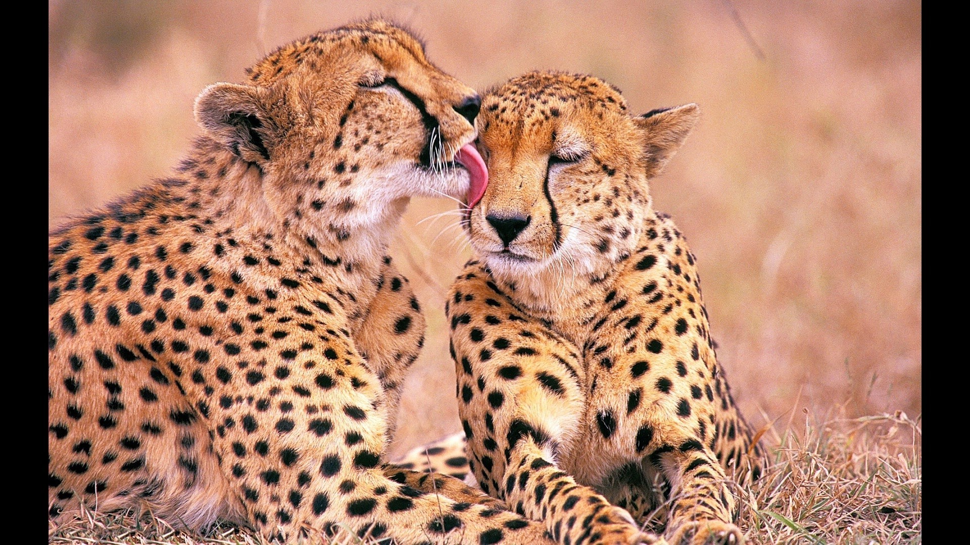 Zwei Wildkatzen liegen nebeneinander
