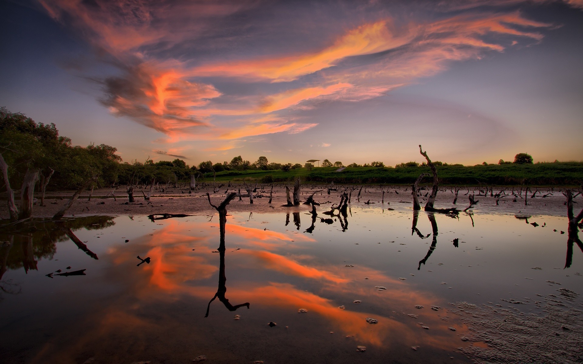 Morgendämmerung am See. wasserlandschaft