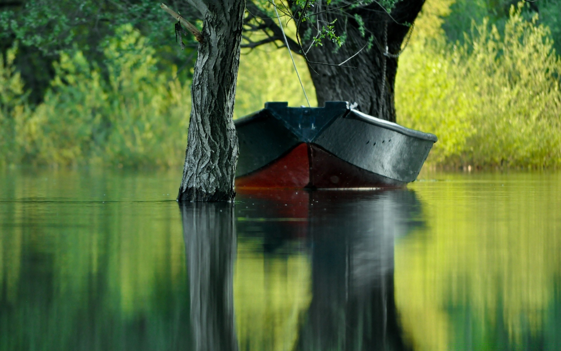 Schöne landschaft und reflexion der wolken im flussSchöne Landschaft und Reflexion der Wolken im Fluss