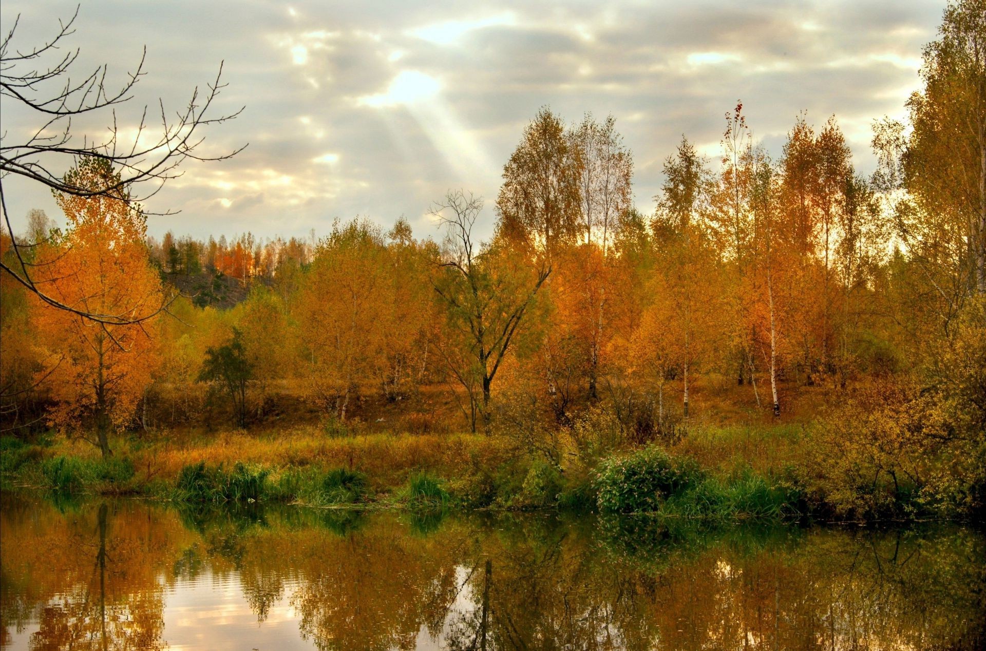 Natur Herbst Bäume gelbe Blätter See