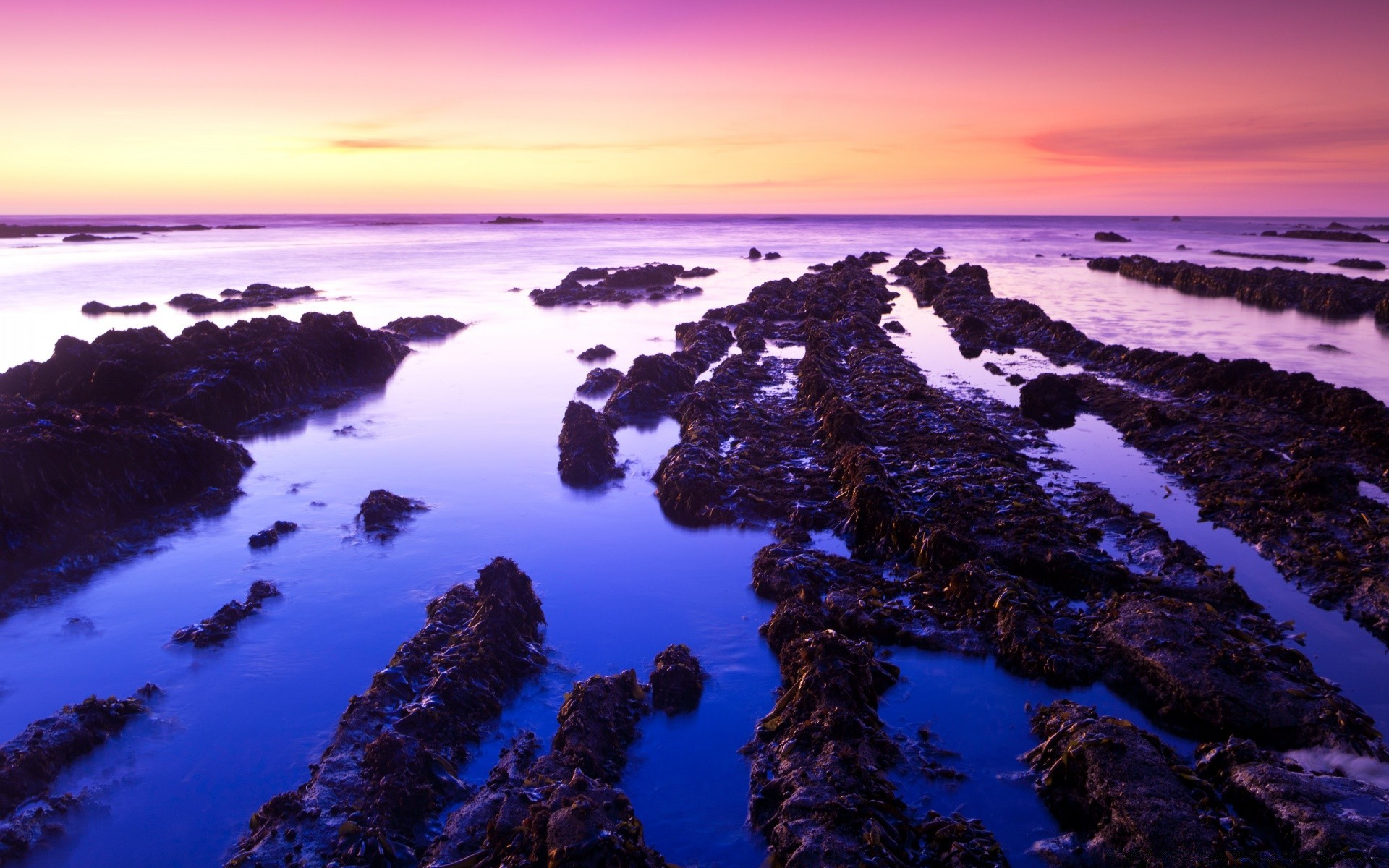 Reflexion des sonnenuntergangs in den gewässern des ozeansReflexion des Sonnenuntergangs in den Gewässern des Ozeans