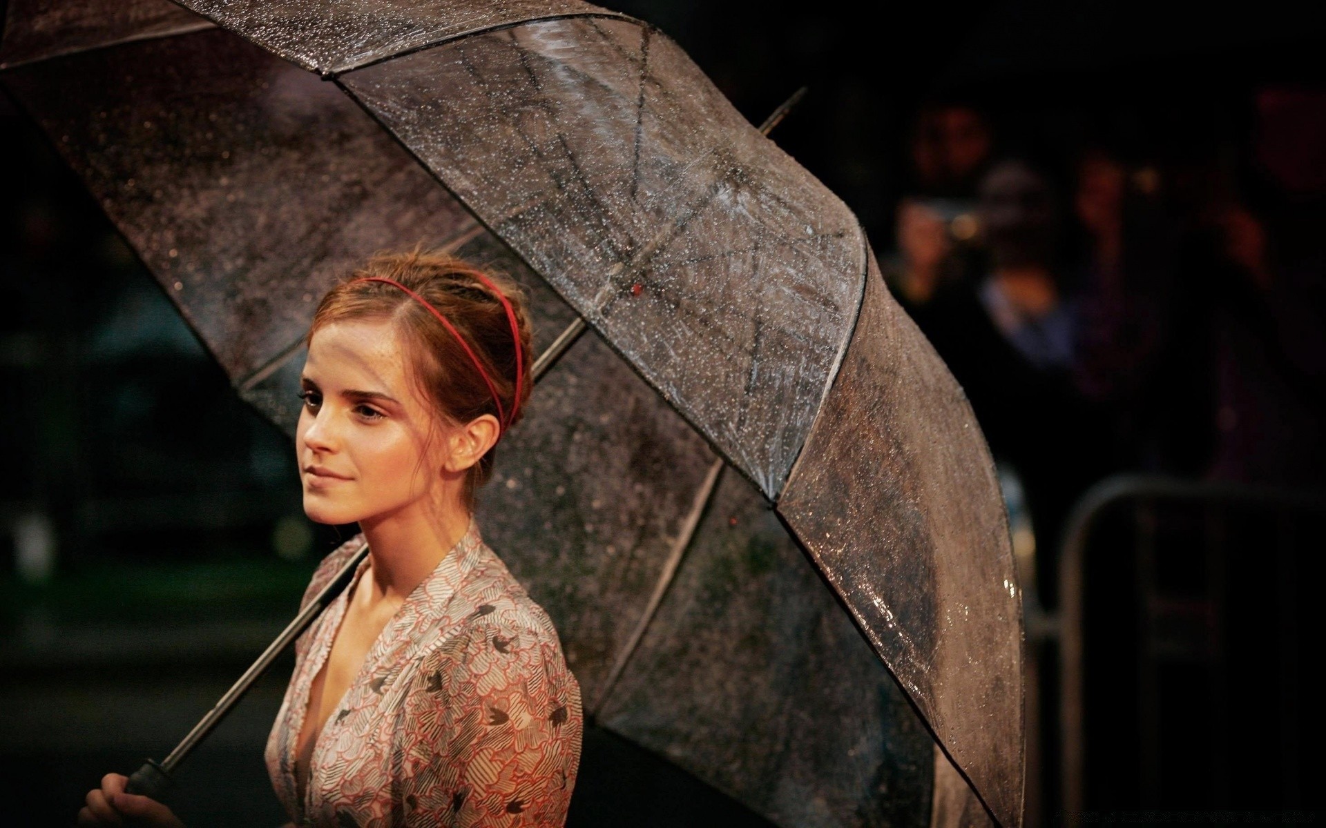 Porträt eines Schauspielerinnen-Mädchens mit Regenschirm