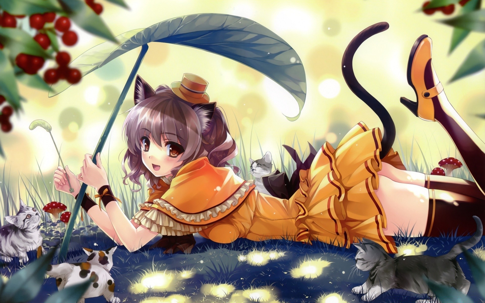 Schöner Anime unter einem Regenschirm auf dem Boden