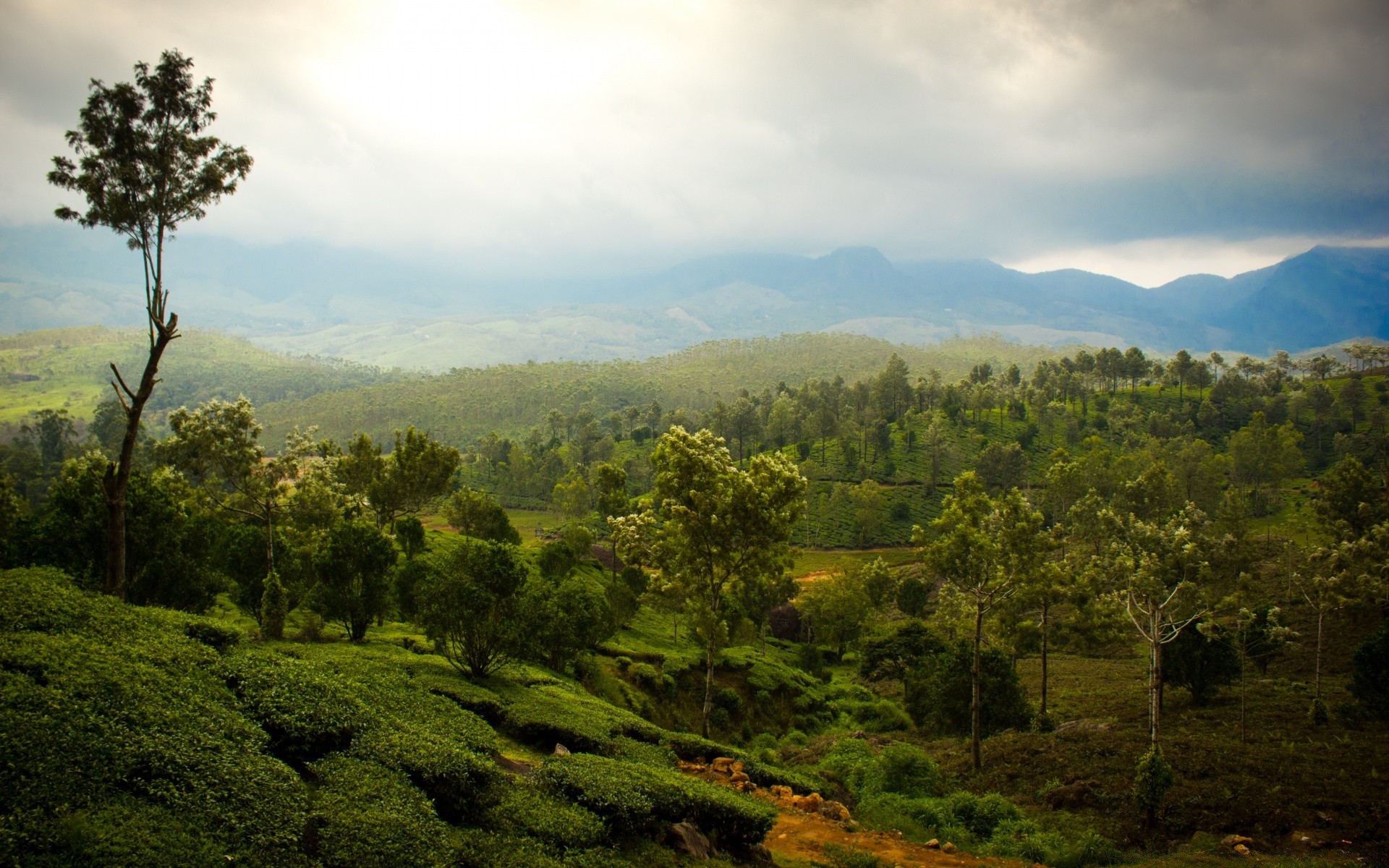 TROPISCHER BAUM AUF DEM HINTERGRUND DER BERGKETTEN