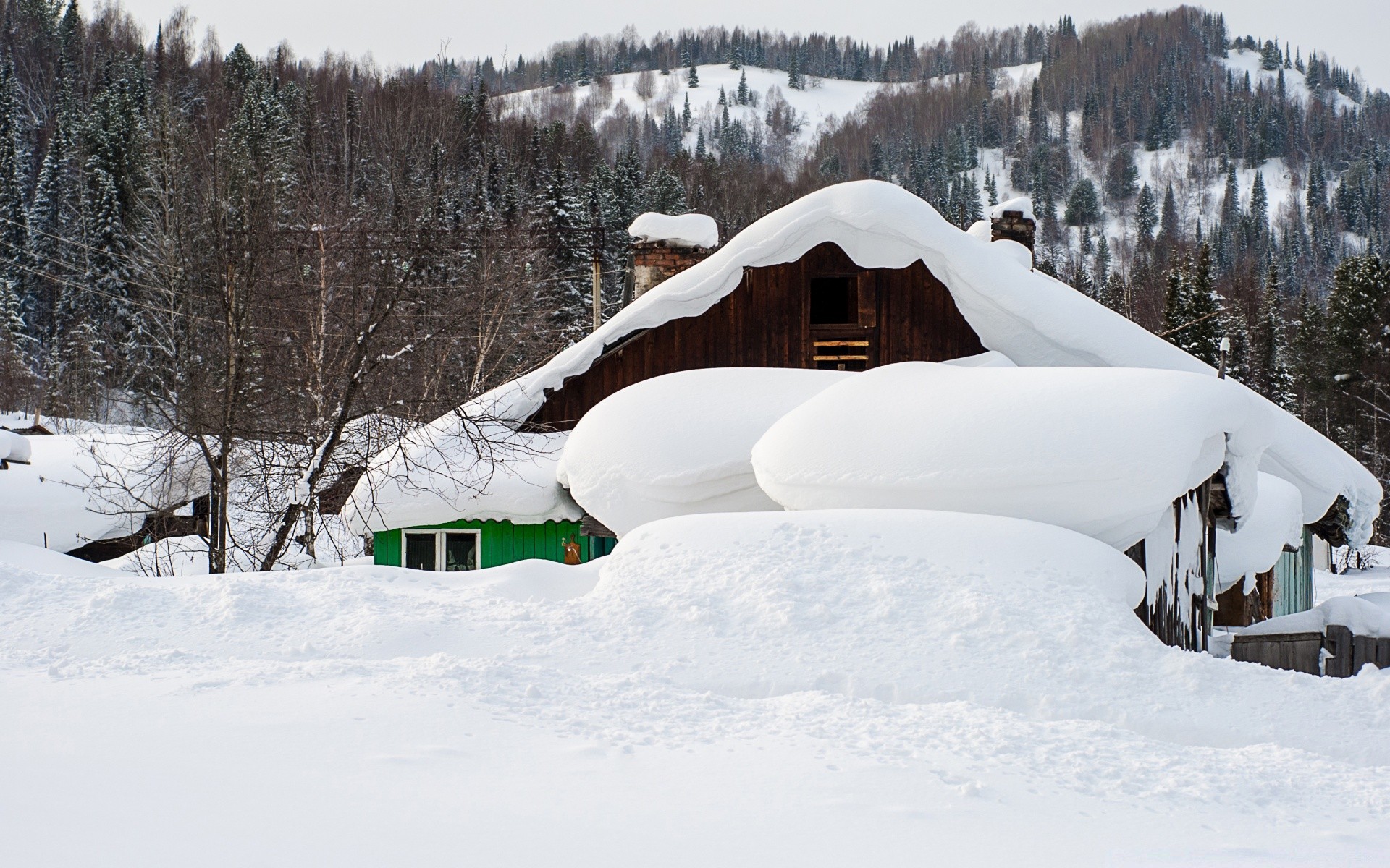 Ein Haus, das unter einer Schneewehe verstaut ist