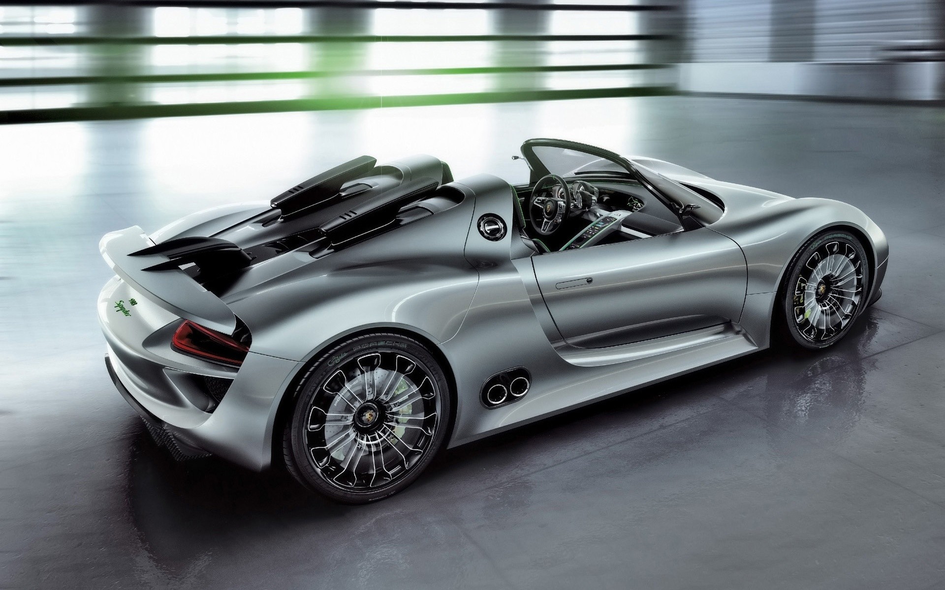 Ein roter Rennwagen steht drinnen unter den Lampen