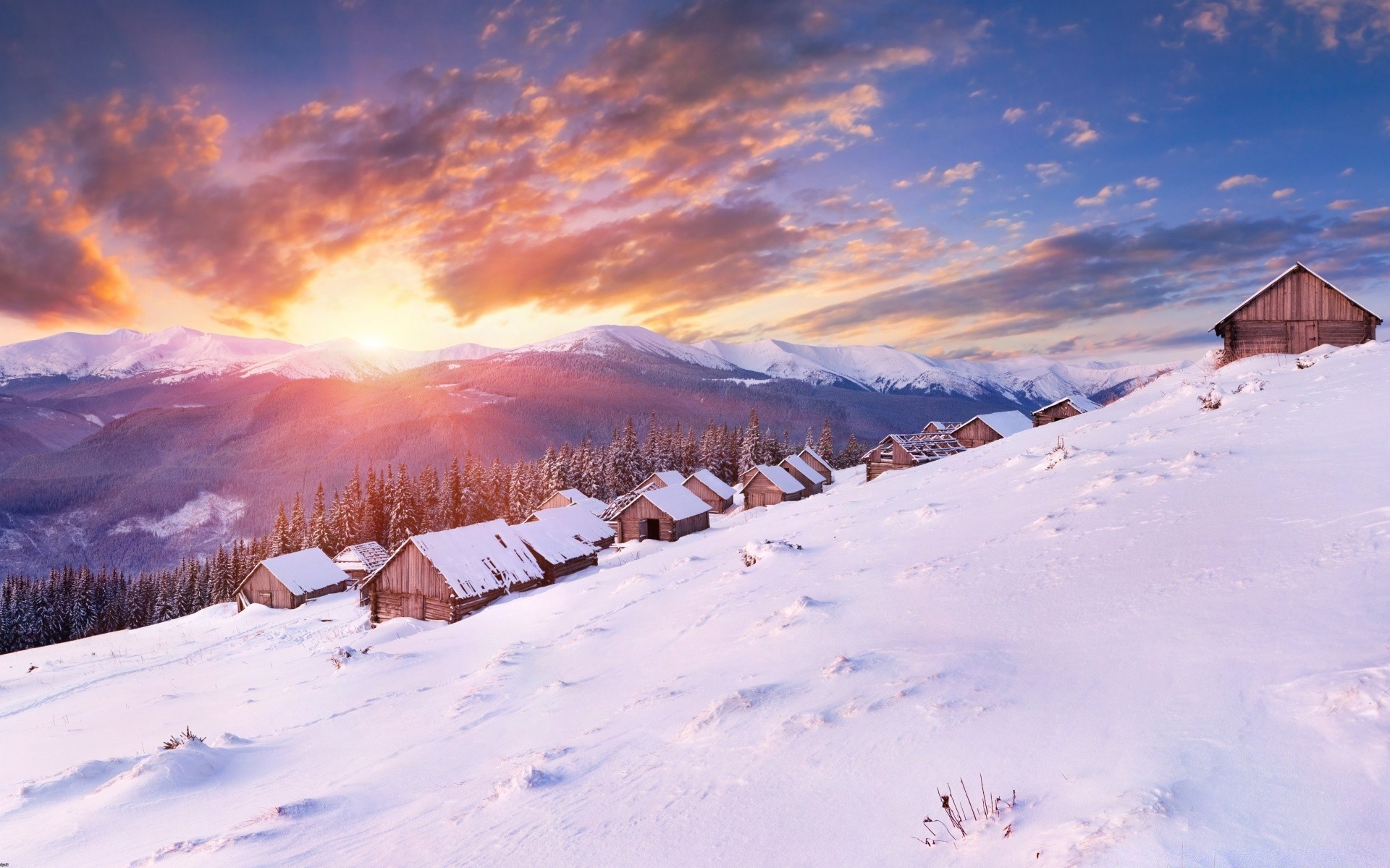 Abendwinter in einem schneebedeckten Bergkurort