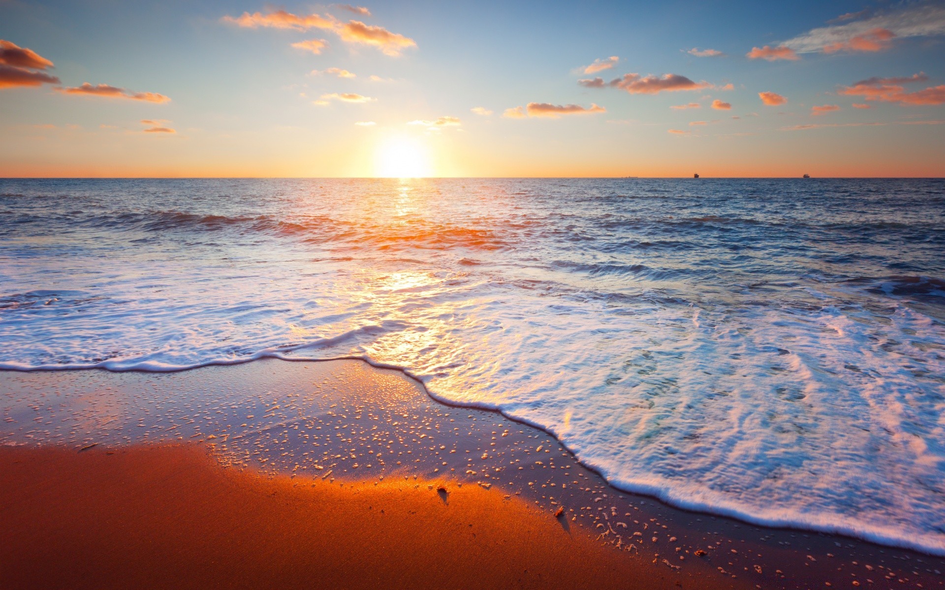 Landschaft des Meeres, der Wellen und des Sonnenuntergangs