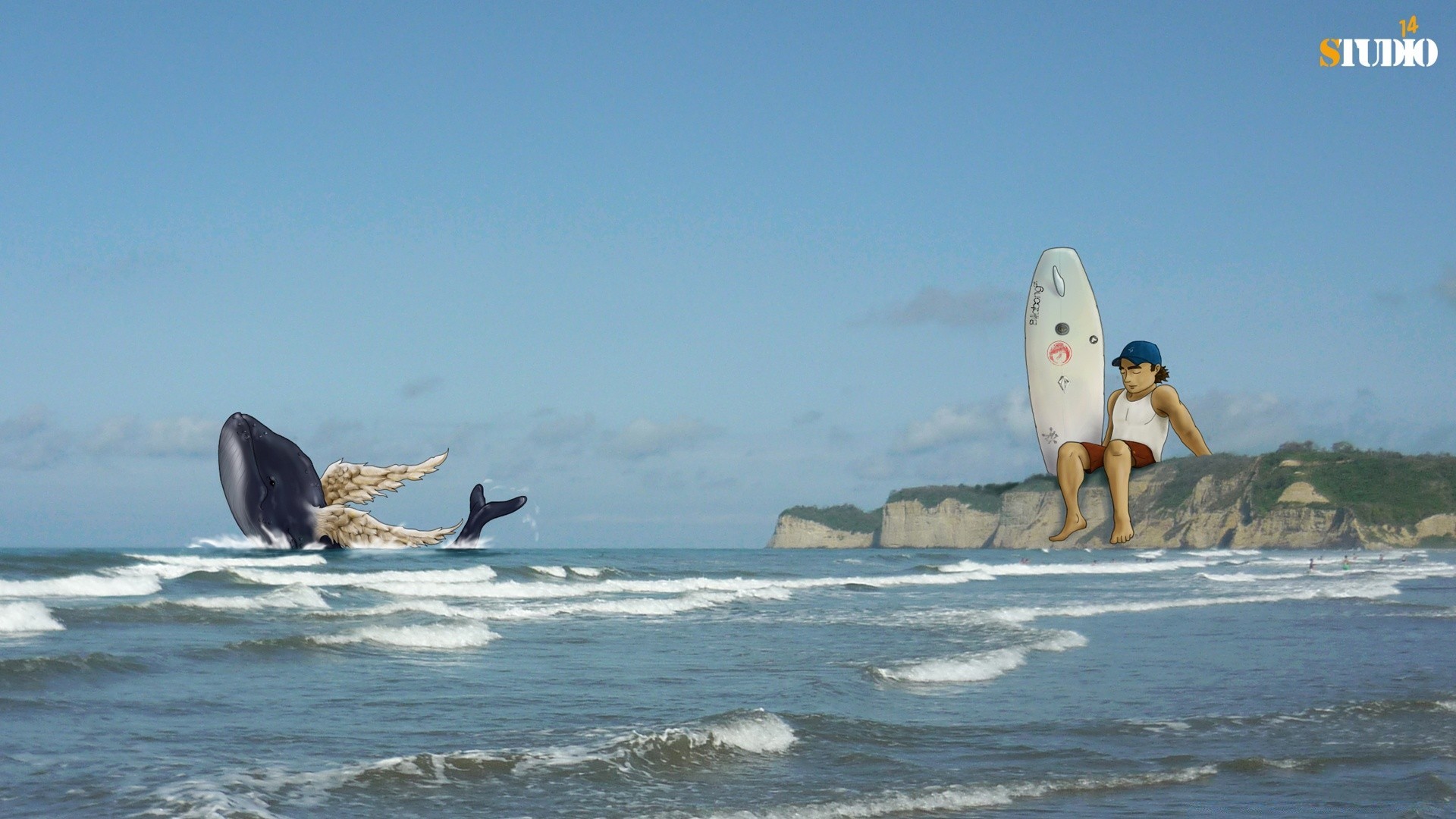 Eine faszinierende türkisfarbene Meereswelle umhüllt den Surfer
