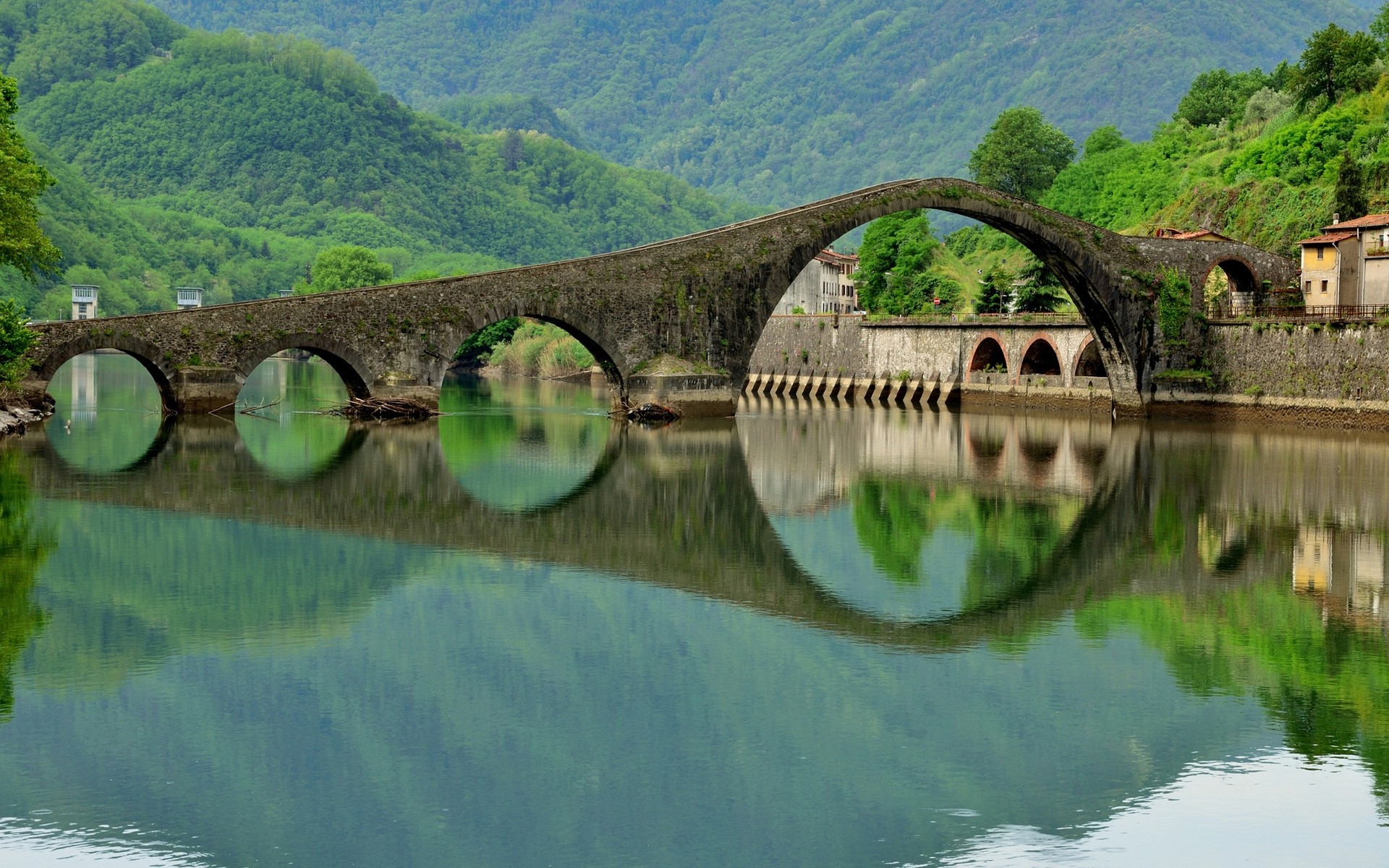 Sie hören nicht auf, die Landschaften mit den alten Brücken in Italien zu überraschen