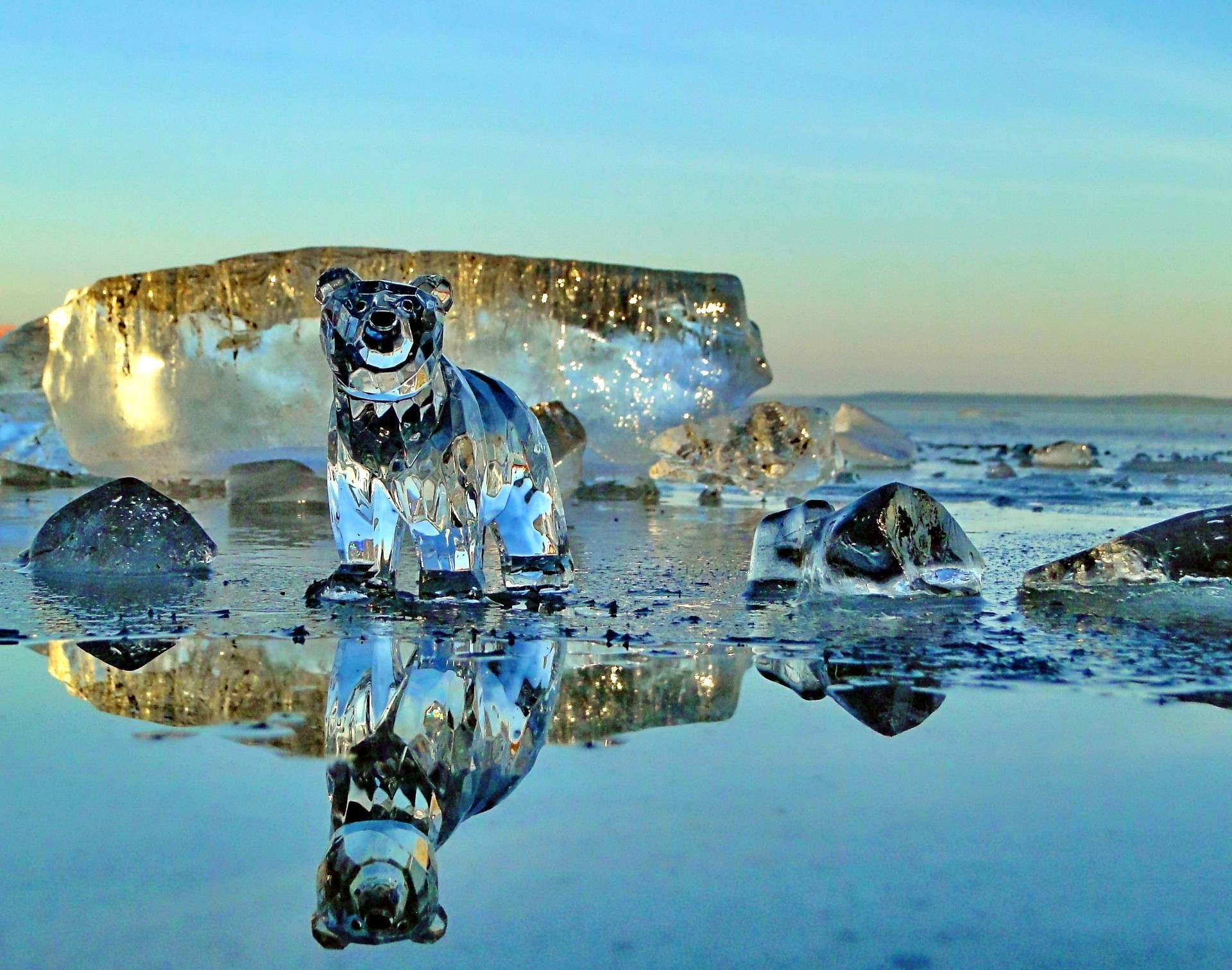 Ein Glasbär auf einem eisbedeckten See