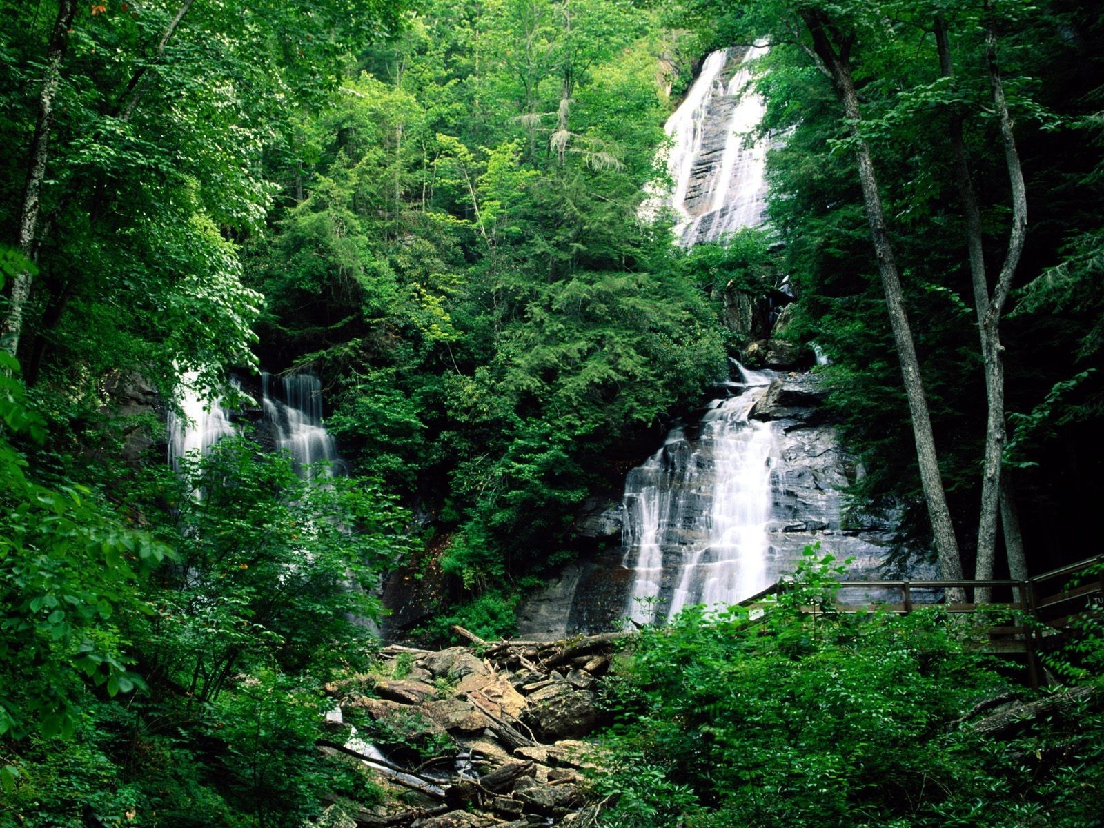 Wasserfall im Regenwald und mit Moos bewachsene Steine