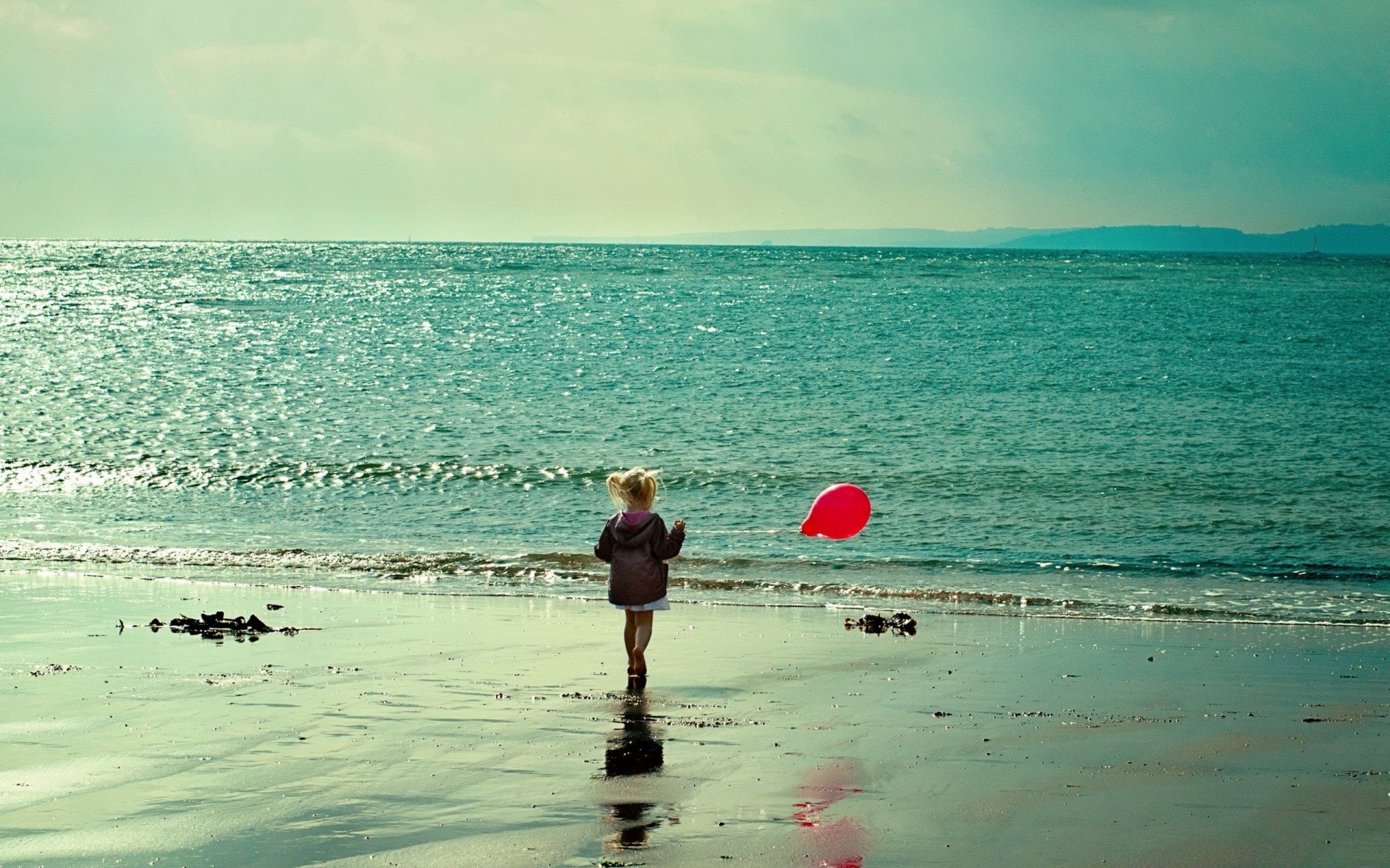 Mädchen mit einem ball auf dem hintergrund des meeresMädchen mit einem Ball auf dem Hintergrund des Meeres