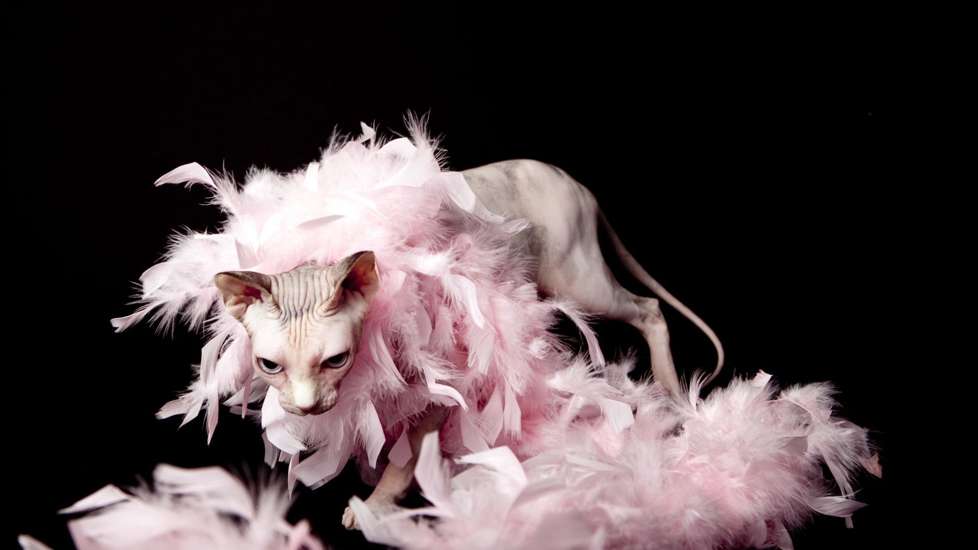 Auf rosa Hintergrund Blondine im rosa flauschigen Kleid