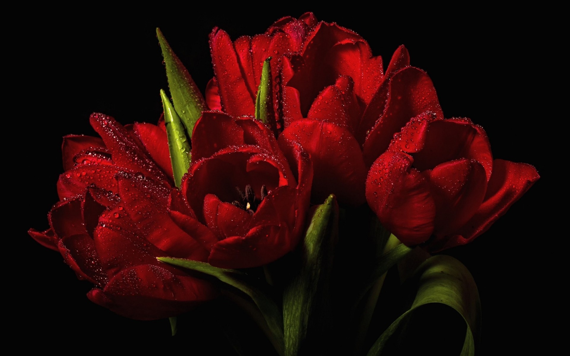 Rote Tulpenblüten auf schwarzem Hintergrund