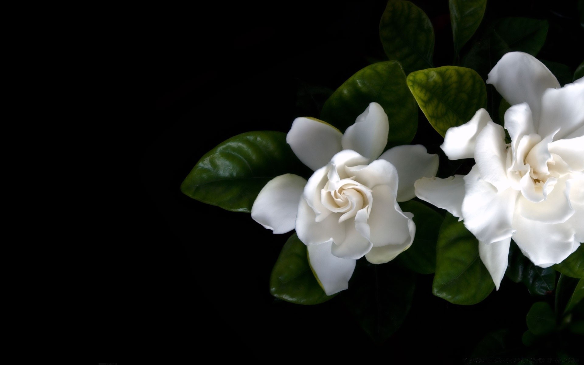 Schöne weiße blumen auf schwarzem hintergrund