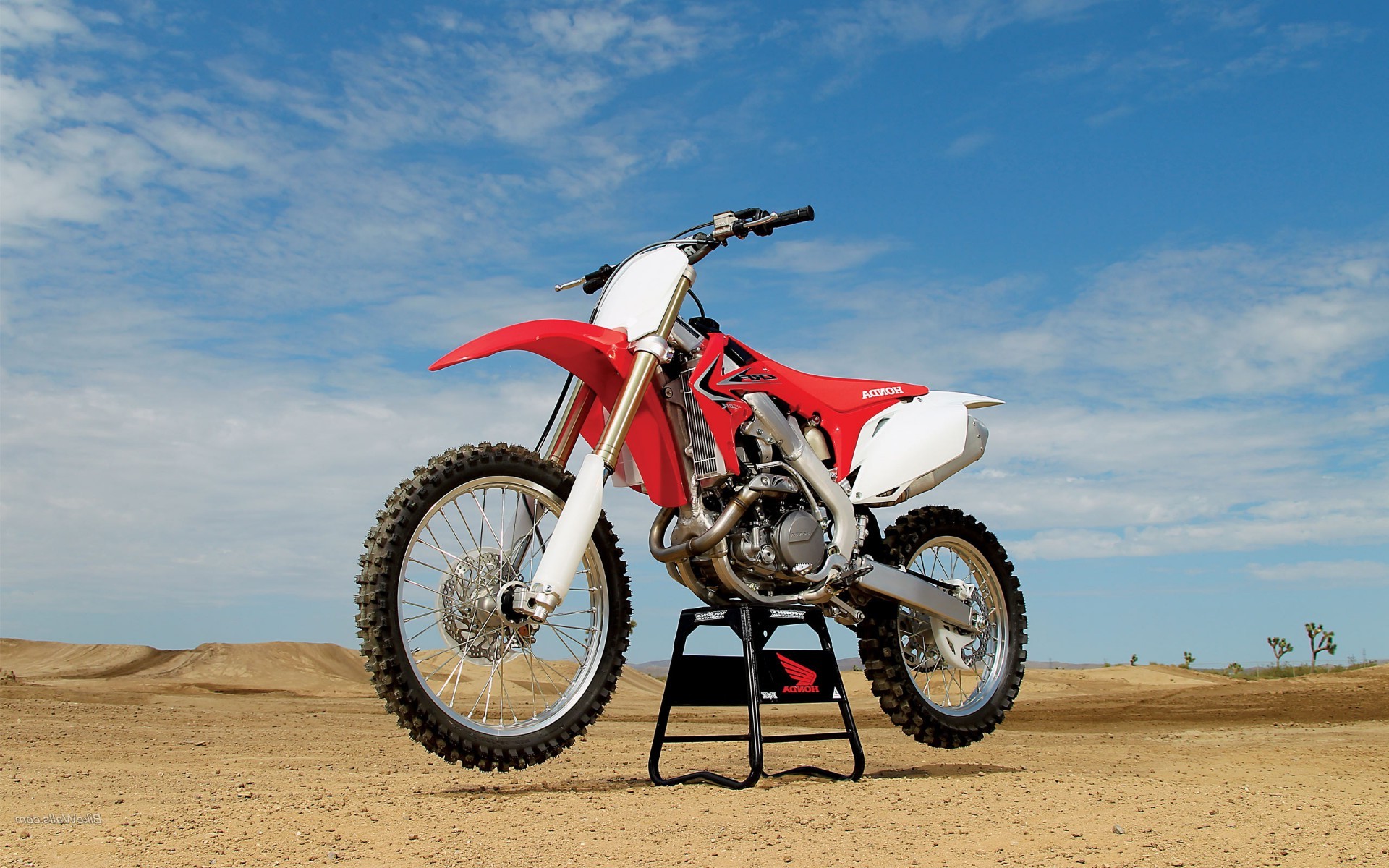 Cooles Rot mit weißem Rennmotorrad auf Wüstengelände Hintergrund