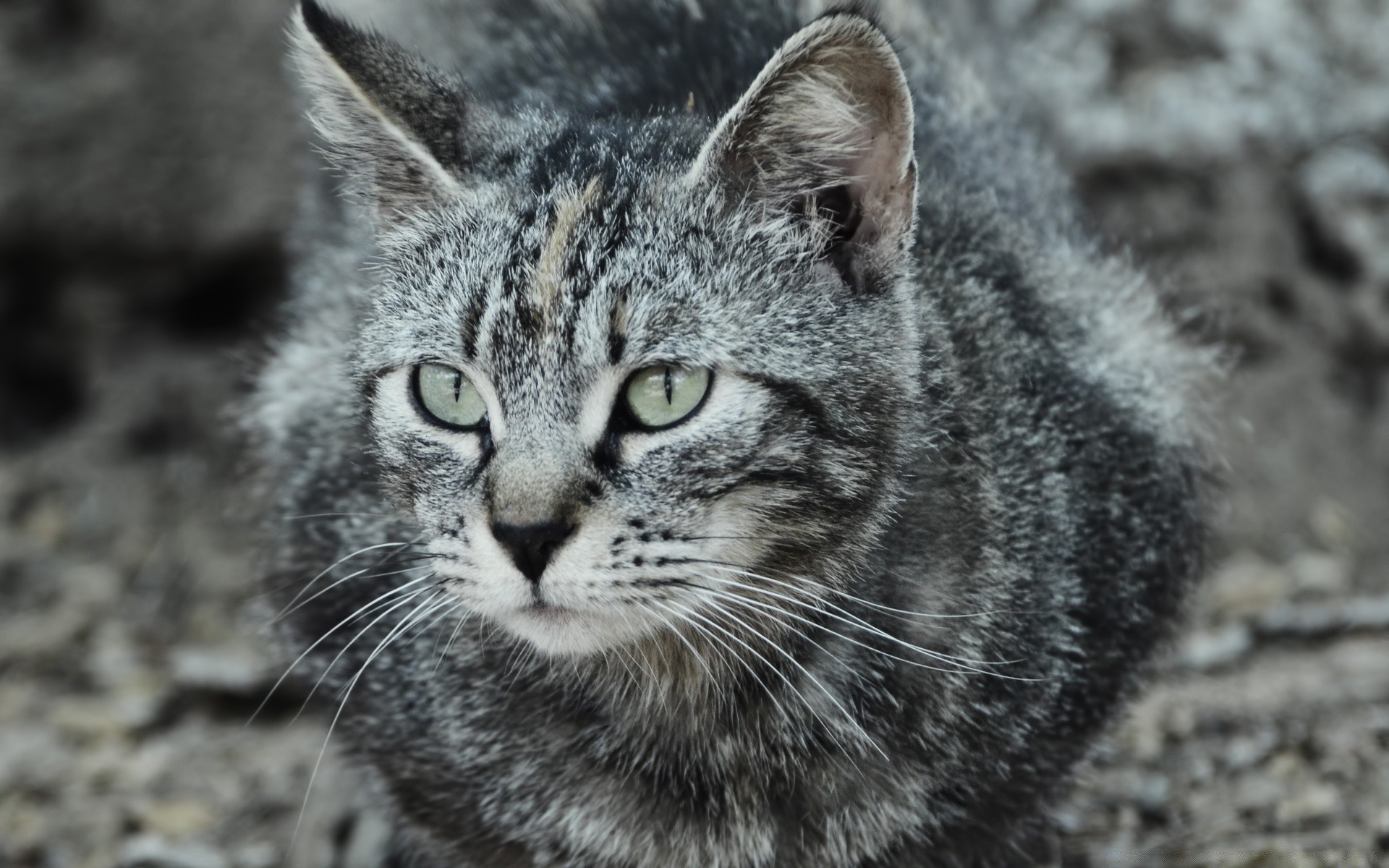 Erschrecke die graue Katze im Sand