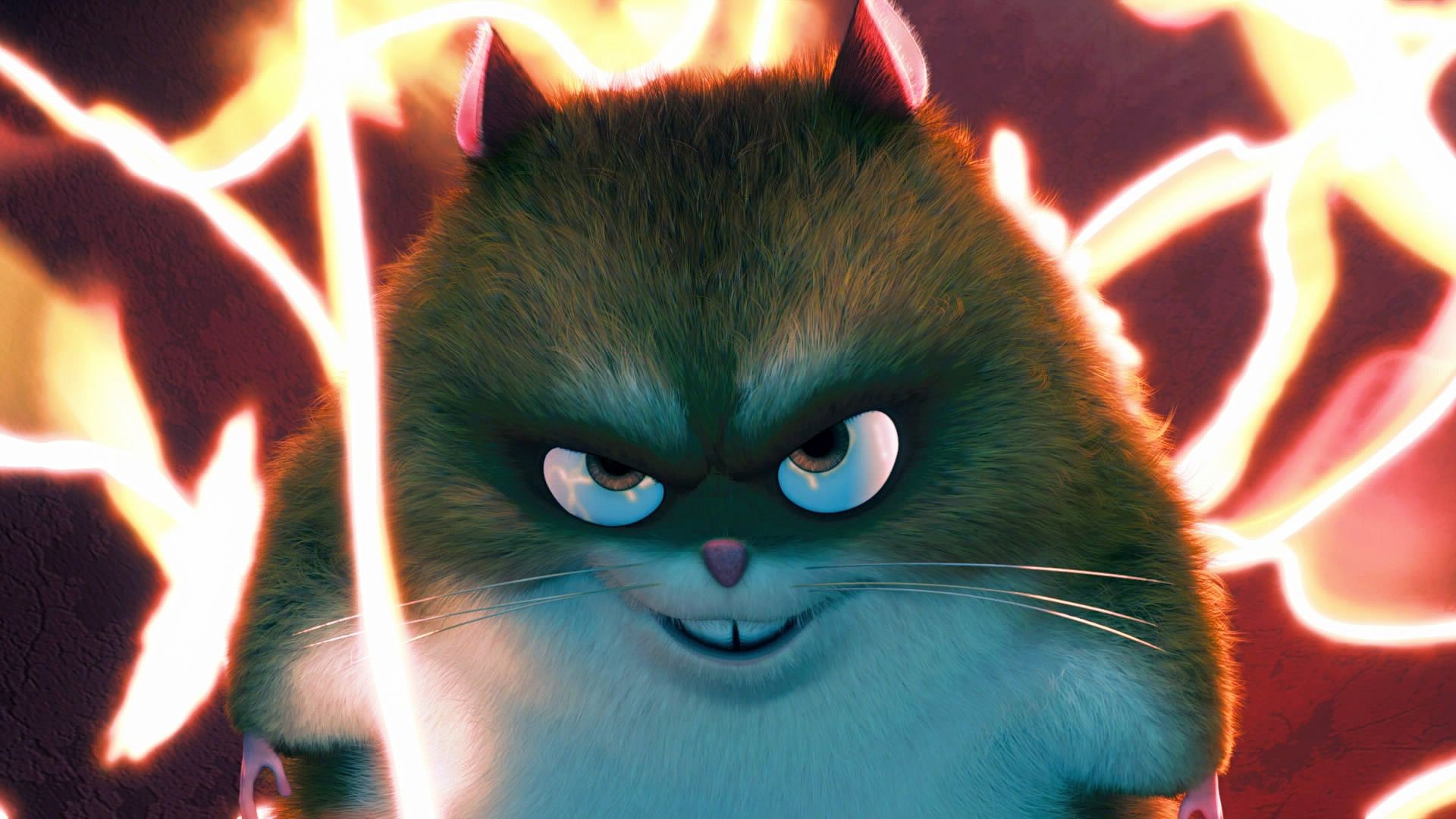 Mollige Katze vor dem Hintergrund einer Flamme mit bösen Augen