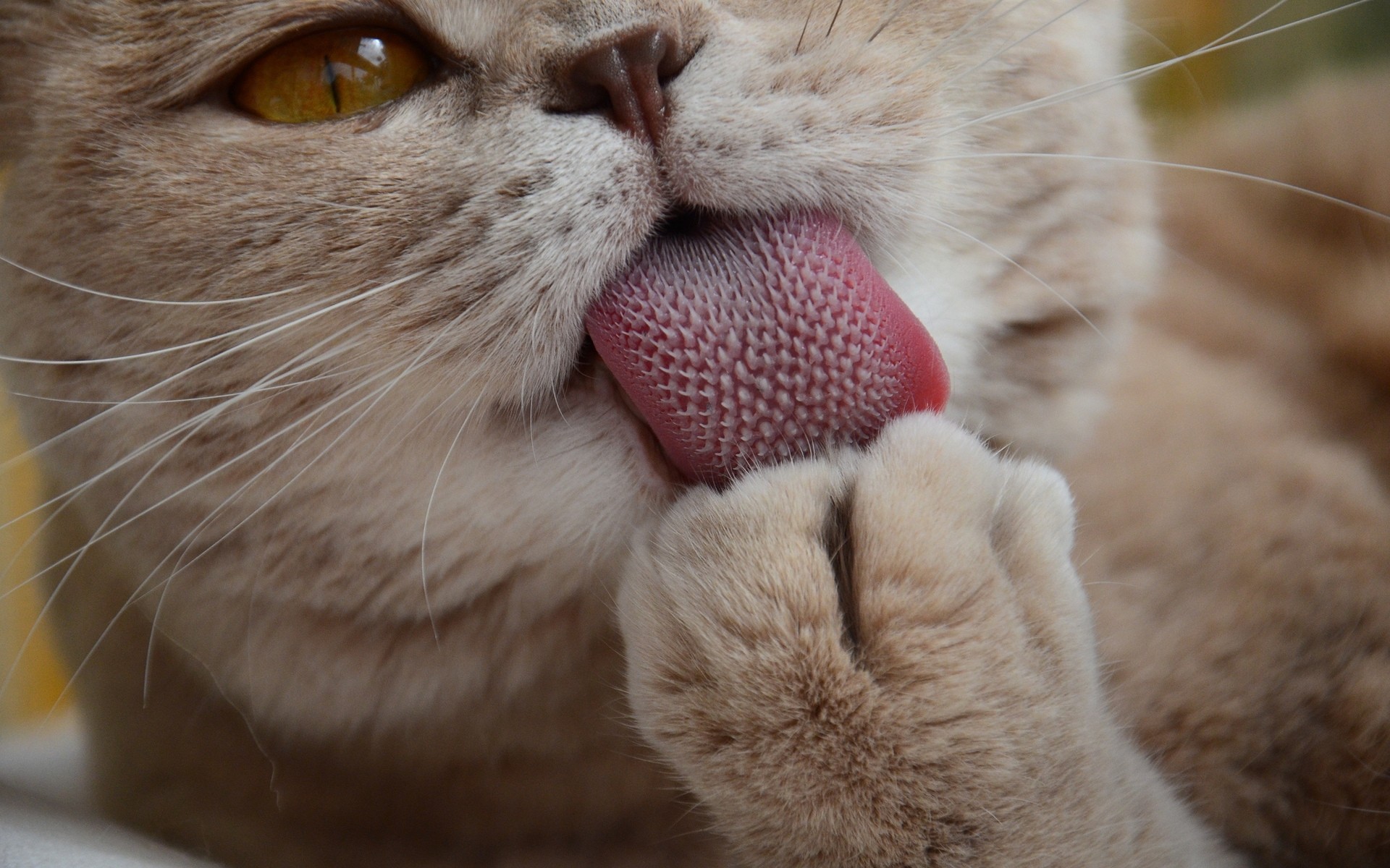Eine reinrassige Katze liegt auf einer weißen Decke