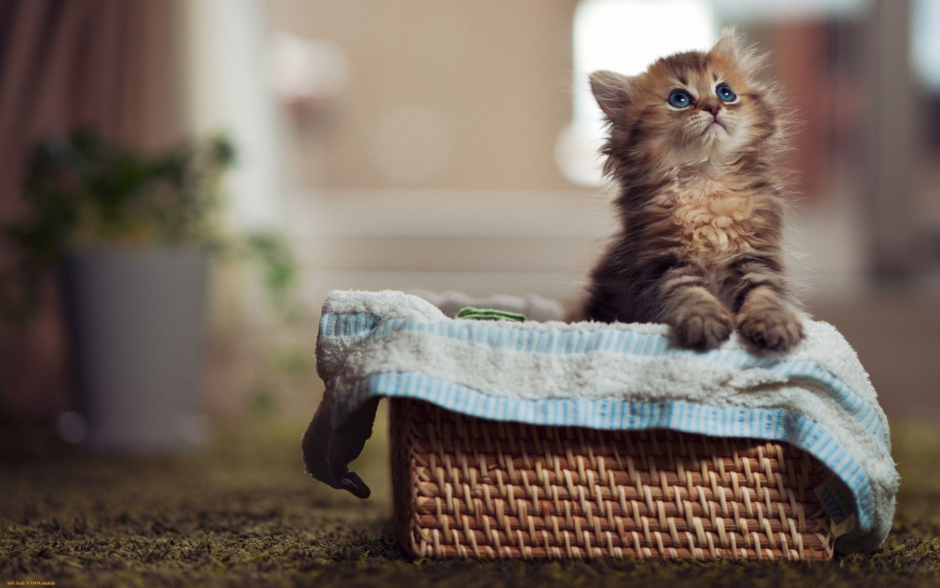 Gestreifte katze schnüffelt löwenzahn auf einer lichtungGestreifte Katze schnüffelt Löwenzahn auf einer Lichtung