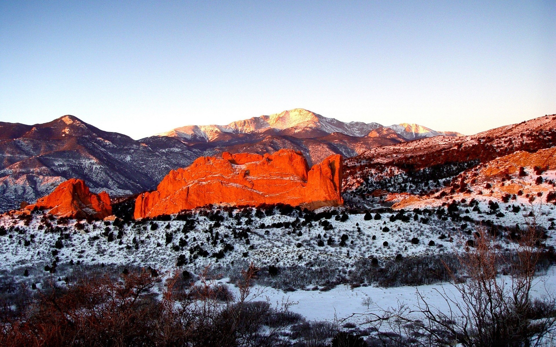 Rote Sonne bei Sonnenuntergang über dem Berg
