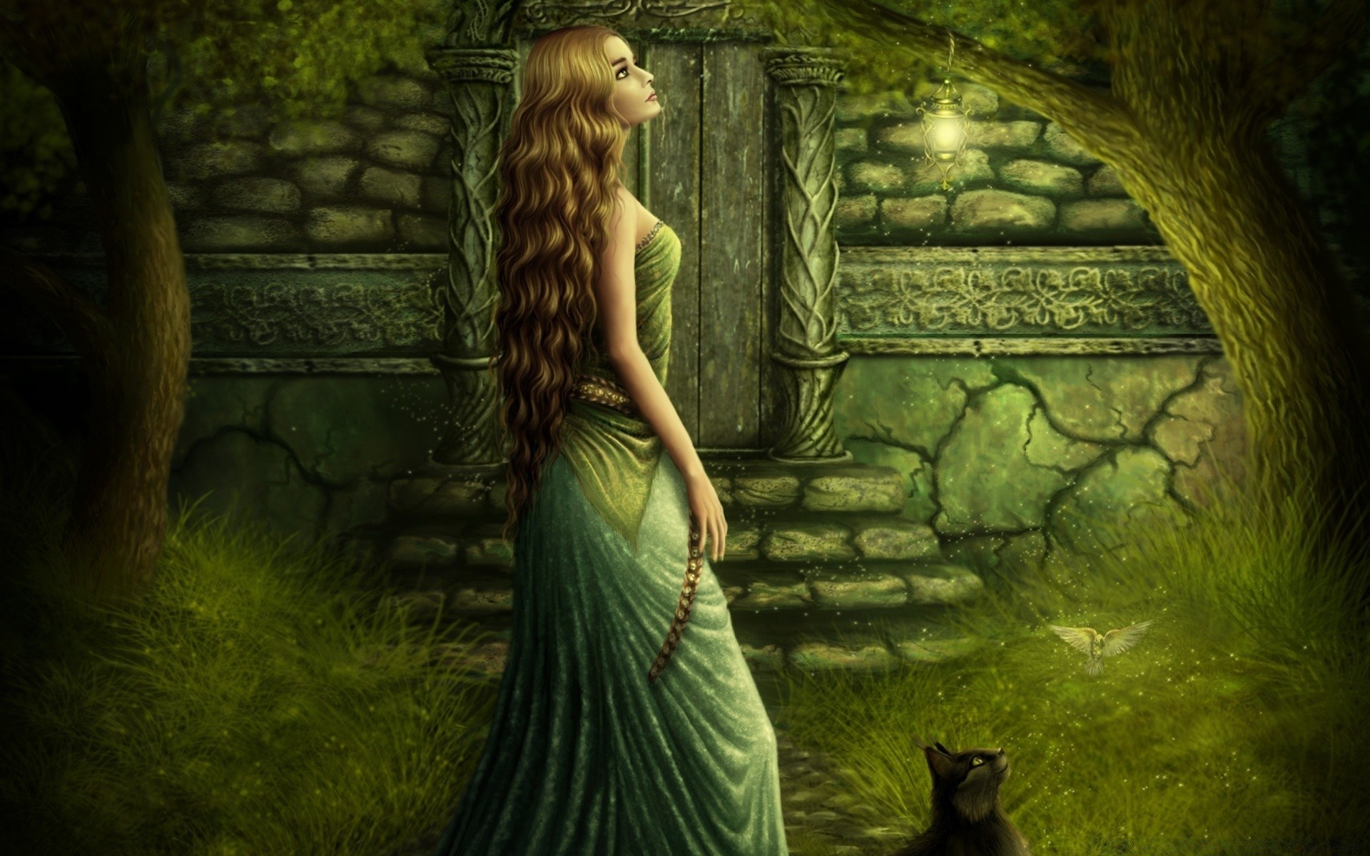 Fantasie schönes Mädchen mit schwarzer Katze