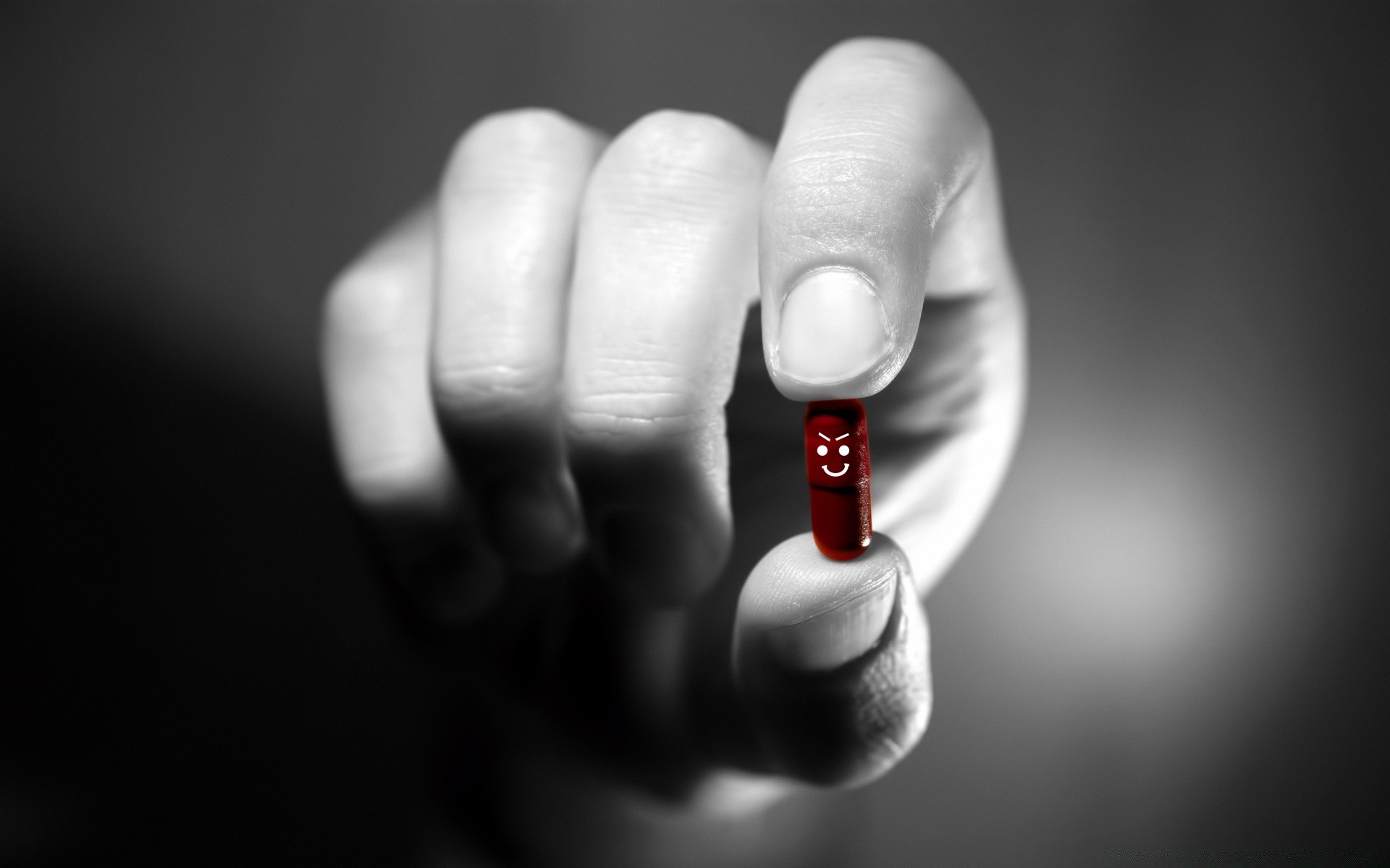 Rote böse Tablette in der Hand