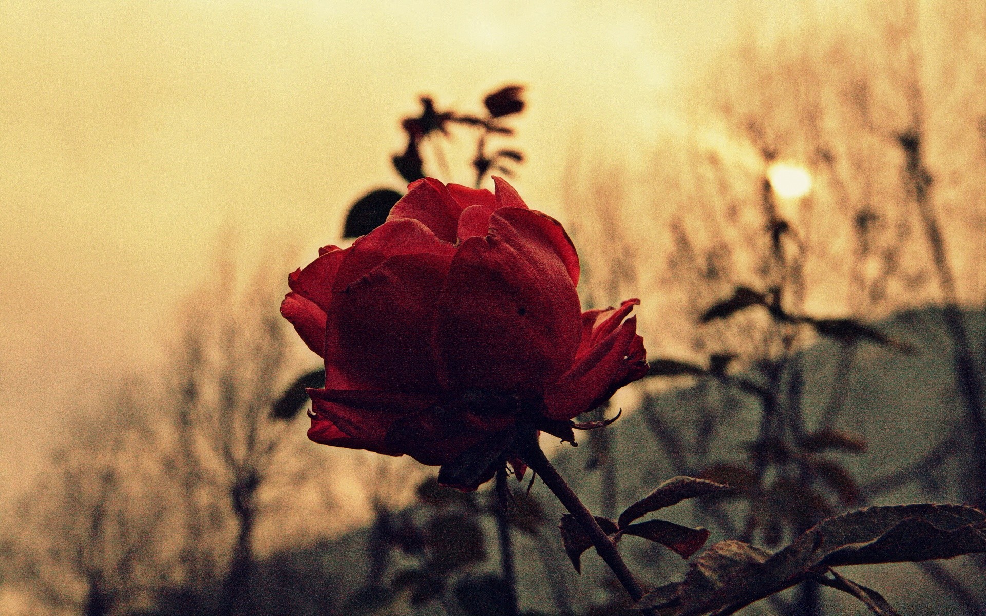 Gelbe Rose mit rotem Rand und Wassertropfen
